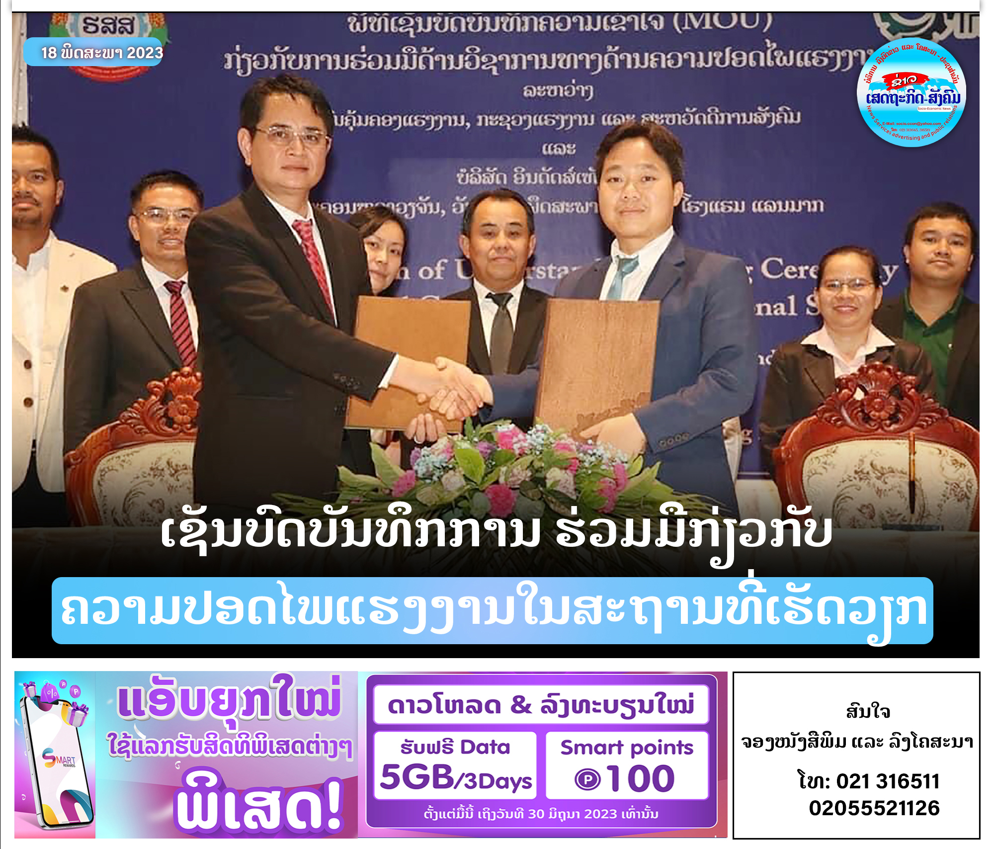 ພິທີລົງນາມບົດບັນທຶກການຮ່ວມມືດ້ານວິຊາການກ່ຽວກັບວຽກງານຄວາມປອດໄພແຮງໃນສະຖານທີ່ເຮັດວຽກຈັດຂຶ້ນໃນວັນທີ 17 ພຶດສະພາ 2023