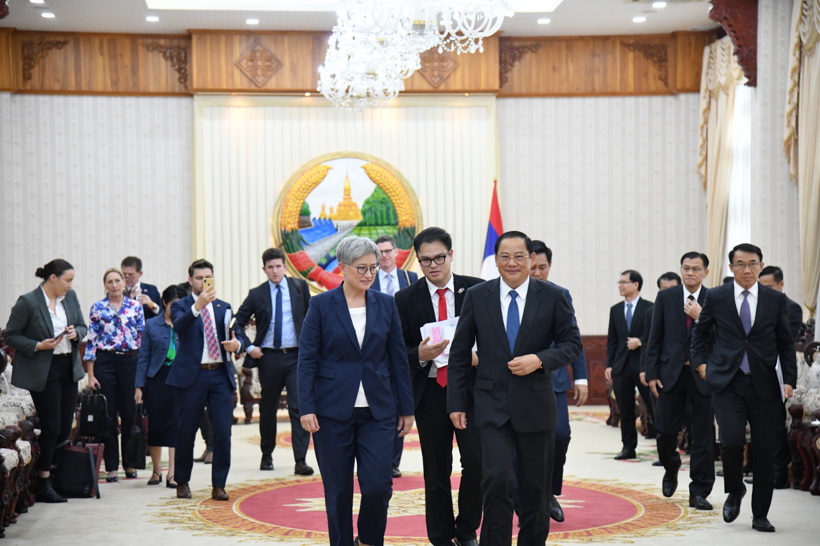 ນວັນທີ 16 ພຶດສະພາ 2023, ທີ່ ສໍານັກງານນາຍົກລັດຖະມົນຕີ, ພະນະທ່ານ ສອນໄຊ ສີພັນດອນ, ນາຍົກລັດຖະມົນຕີ ແຫ່ງ ສປປ ລາວ ໄດ້ຕ້ອນຮັບການເຂົ້າຢ້ຽມຂໍ່ານັບຂອງ ທ່ານ ນາງ ເພັນນີ ວອງ