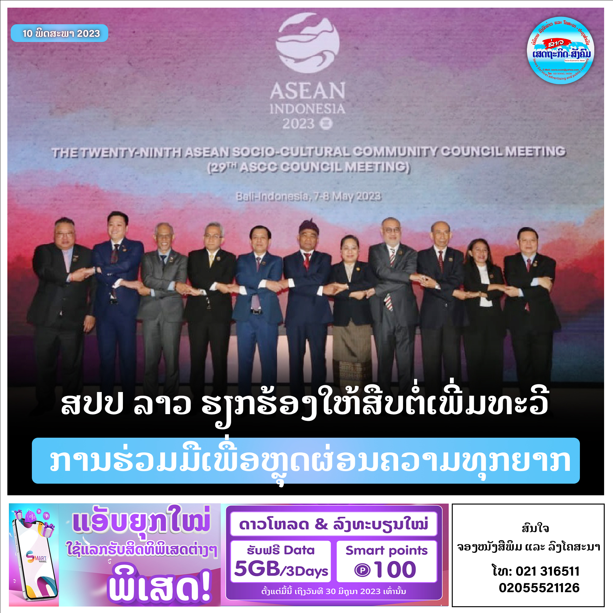 ໃນກອງປະຊຸມລັດຖະມົນຕີສະພາປະຊາຄົມວັດທະນະທຳ-ສັງຄົມອາຊຽນ ຄັ້ງທີ 29 ຈັດຂຶ້ນທີ່ບາຫລີ, ປະເທດອິນໂດເນເຊຍ ໃນວັນທີ 8 ພຶດສະພາ 2023 ຜ່ານມາ,