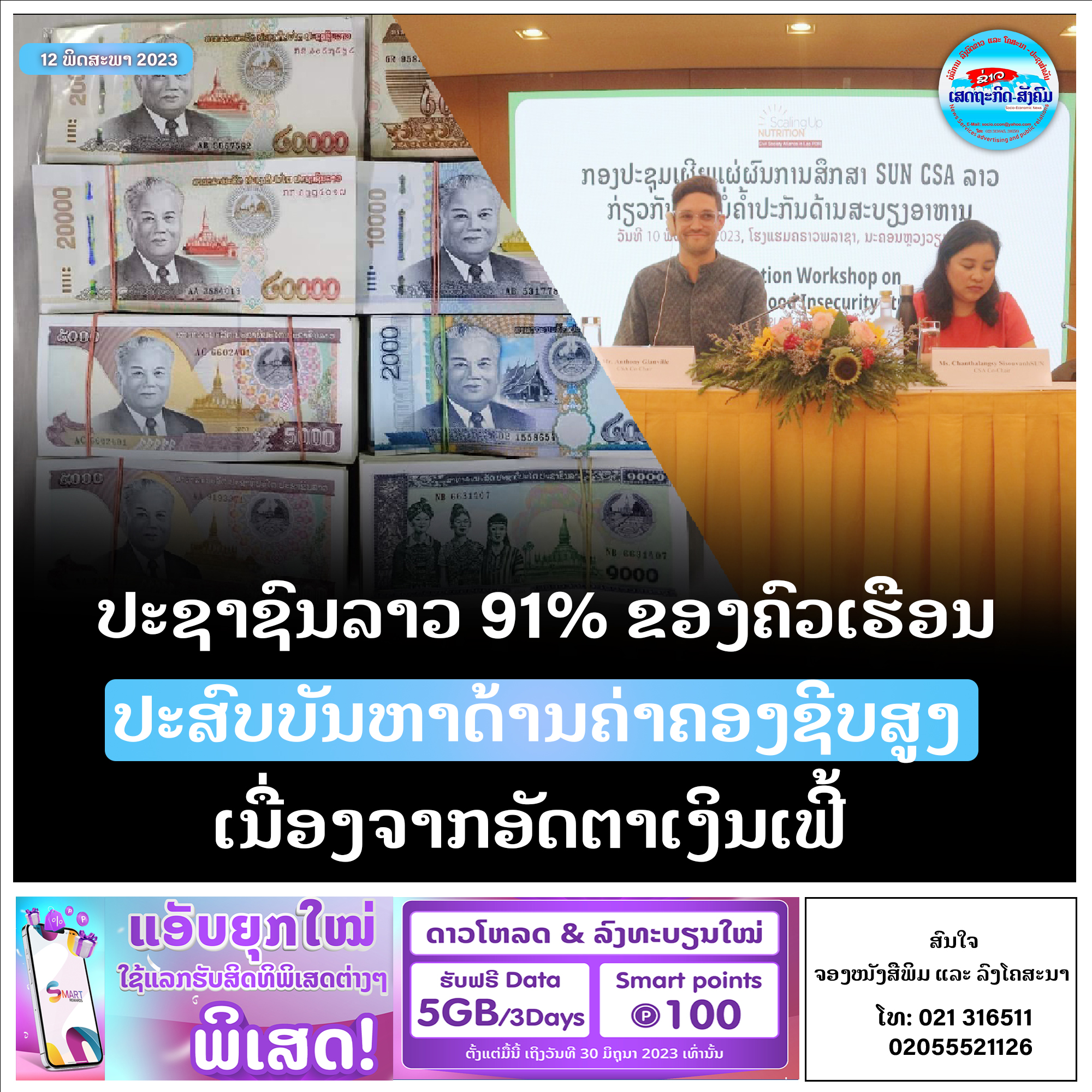 ບັນດາອົງການຈັດຕັ້ງທາງສັງຄົມທີ່ມີສ່ວນຮ່ວມໃນເຄືອຂ່າຍໂພຊະນາການ (SUN CSA) ໄດ້ເຜີຍແຜ່ບົດສຶກສາກ່ຽວກັບຜົນກະທົບຂອງອັດຕາເງີນເຟີ້ຕໍ່ການຄໍ້າປະກັນດ້ານສະບຽງອາຫານໃນ ສປປ ລາວ ວັນທີ 10 ພຶດສະພາຜ່ານມາທີ່ນະຄອນຫຼວງວຽງຈັນ