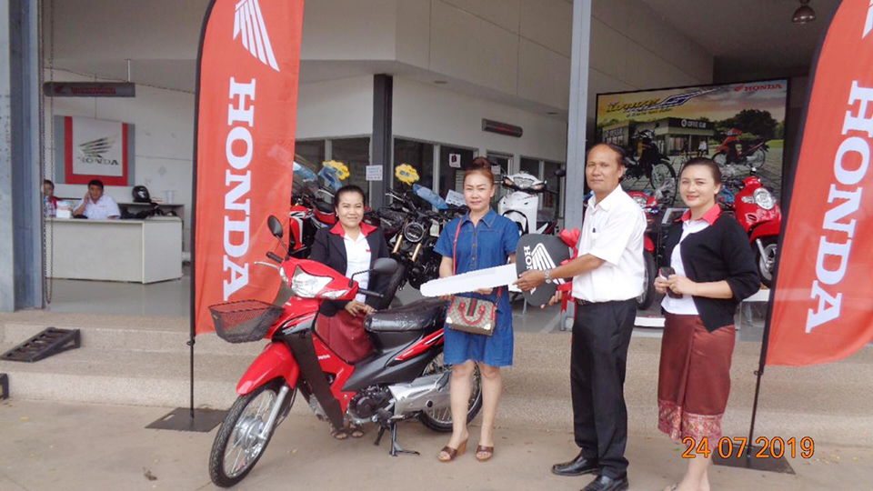 ບໍລິສັດນິວຈິບເຊັງຈຳກັດ ໄດ້ແຈກໂຊກໃຫ້ກັບລູກຄ້າທີ່ໄດ້ສົ່ງຄຳຕອບແບບສອບຖາມການນຳໃຊ້ລົດຈັກຊຶ່ງຜູ້ໂຊກດີທີ່ໄດ້ຮັບລາງວັນລົດຈັກຮອນດ້າເວບ 100 ຈຳນວນ 1 ຄັນມູນຄ່າ 11,79 ລ້ານກີບ ແມ່ນນາງ ລັດສະໝີ ອຸດົມຈັນ ໃຫ້ກຽດມອບໂດຍ ທ່ານ ສົມສັກ ຈະເລີນ ຜົນຜູ້ອຳນວຍການໃຫຍ່ບໍລິສັດນິວຈິບເຊັງຈຳກັດ.