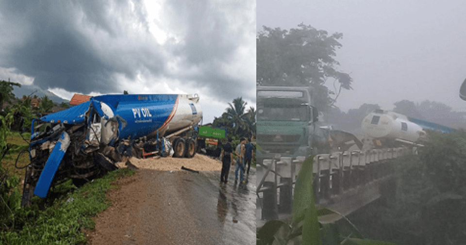 ແຂວງວຽງຈັນ ລາຍງານຈາກປະຊາຊົນໃຫ້ຮູ້ວ່າ: ມື້ນີ້ (26/6/ 2019) ເວລາປະມານ 13:00 ໂມງ ໄດ້ເກີດມີອຸບັດຕິເຫດລົດໃຫ່ຍຕຳກັນເຊິ່ງເປັນລົດຂົນສົ່ງຂອງຫວຽດນາມ ແລະລົດສະແຕັກນໍ້າມັນຈຸດເກີດເຫດຂົວນາມອນ ທາງໄປວັງວຽງ ສະພາບລົດສະແຕັກນໍ້ມັນແມ່ນເສຍຫາຍຫລາຍສົມຄວນສ່ວນຄົນເຈັບແມ່ນໄດ້ຖືກພົນ ລະເມືອງດີນຳສົ່ງໂຮງໝໍແລ້ວ.