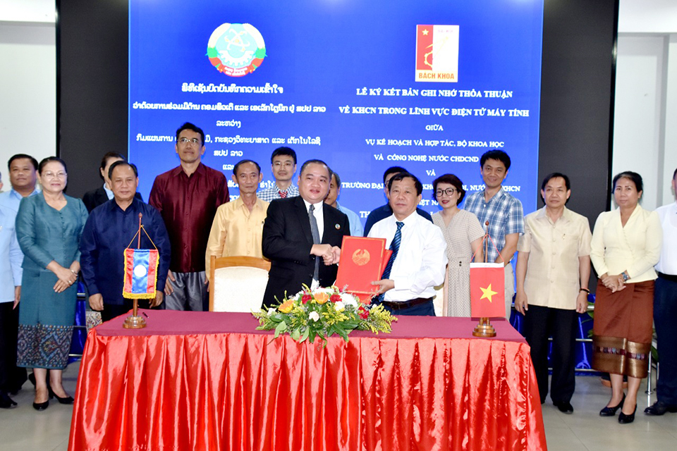 ກະຊວງວິທະຍາສາດ ແລະເຕັກໂນໂລຊີ (ກວຕ) ສປປ ລາວ ຮ່ວມກັບມະຫາວິທະຍາໄລ ສັບພະວິຊາ ຮ່າໂນ້ຍ, ສສຫວຽດນາມຮ່ວມກັນລົງນາມບົດບັນທຶກຄວາມເຂົ້າໃຈວ່າດ້ວຍການຮ່ວມມືໃນຂົງເຂດຄອມພິວເຕີ ແລະເອເລັກໂຕຣນິກເປັນຕົ້ນແມ່ນການຄົ້ນຄວ້າ ແລະພັດທະນາອິນເຕີເນັດແຫ່ງສັບພະສິ່ງ (IoT), ປັນຍາປະດິດ (AI),