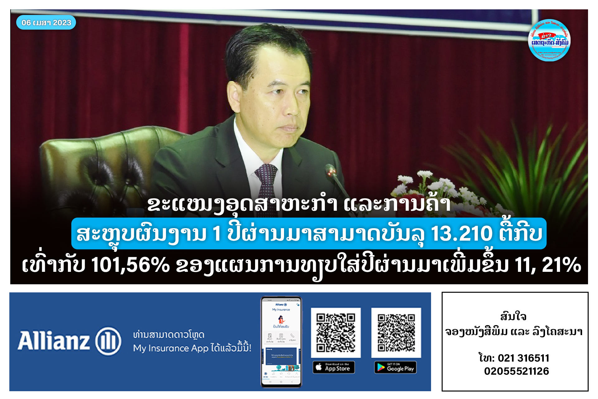 ໃນລະຫວ່າງວັນທີ 6-7 ເມສາ 2023 ກະຊວງອຸດສາຫະກຳ ແລະການຄ້າ ຈັດກອງປະຊຸມປະຈຳປີ 2022 ຂອງຂະແໜງອຸດສາຫະກຳ ແລະການຄ້າທີ່ນະຄອນຫລວງວຽງຈັນ ໂດຍການເປັນປະທານຂອງທ່ານ ມະໄລທອງ ກົມມະສິດ ລັດຖະມົນຕີ ກະຊວງອຸດສາຫະກຳ ແລະການຄ້າ,