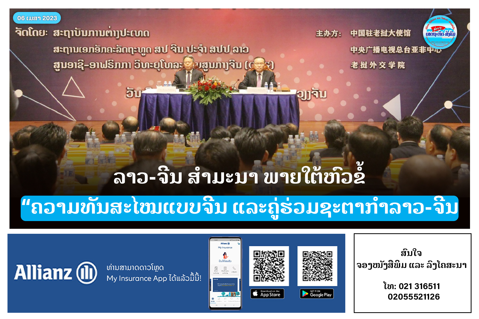 ໃນວັນທີ 6 ເມສາ 2023 ສະຖາບັນການຕ່າງປະເທດ, ກະຊວງການຕ່າງປະເທດຮ່ວມກັບສະຖານທູດ ສປ ຈີນ ປະຈຳ ສປປ ລາວ ແລະສູນອາຊີ-ອາຟຣິກກາ ວິທະຍຸໂທລະພາບສູນກາງຈີນ (CMG) ໄດ້ຈັດກອງປະຊຸມສຳມະນາ ພາຍໃຕ້ຫົວຂໍ້ “ຄວາມທັນສະໄໝແບບຈີນ ແລະ ຄູ່ຮ່ວມຊະຕາກຳ ລາວ-ຈີນ”