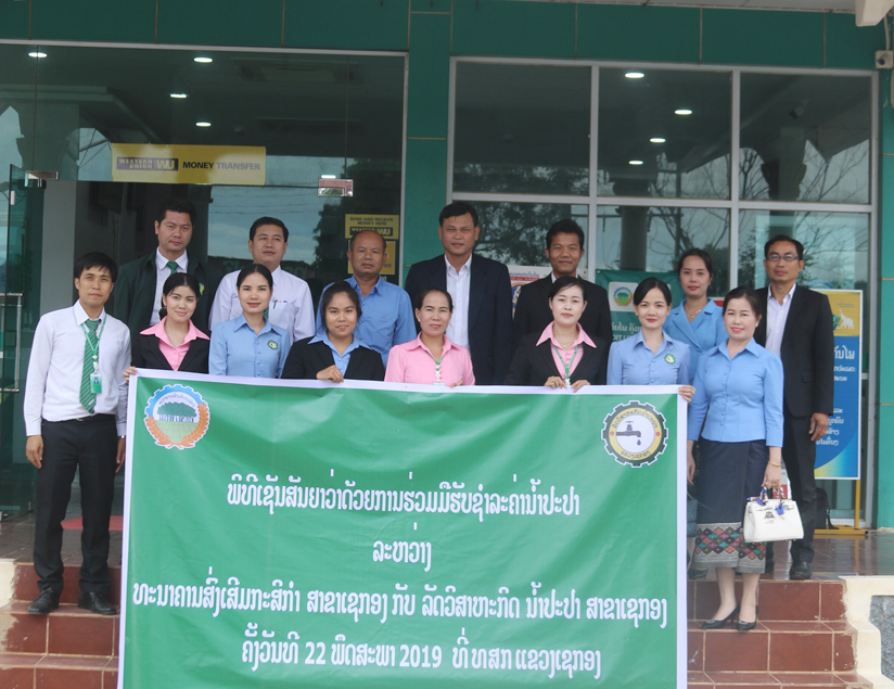 ພິທີເຊັນສັນຍາຮ່ວມທຸລະກິດການຊໍາລະຄ່ານໍ້າປະປາຜ່ານທະນາຄານລະ ຫວ່າງທ່ານ ບຸນເຫຼືອ ສີລິພັນ ອໍານວຍການລັດວິສາຫະກິດນໍ້າປະປາແຂວງເຊກອງ ແລະທ່ານ ສີໜຸກ ບຸດສິງທອງ ຫົວໜ້າທະນາຄານສົ່ງເສີມກະສິກໍາ (ທສກ) ສາຂາ ແຂວງເຊກອງໄດ້ມີຂຶ້ນໃນວັນທີ 22 ພຶດສະພາ 2019