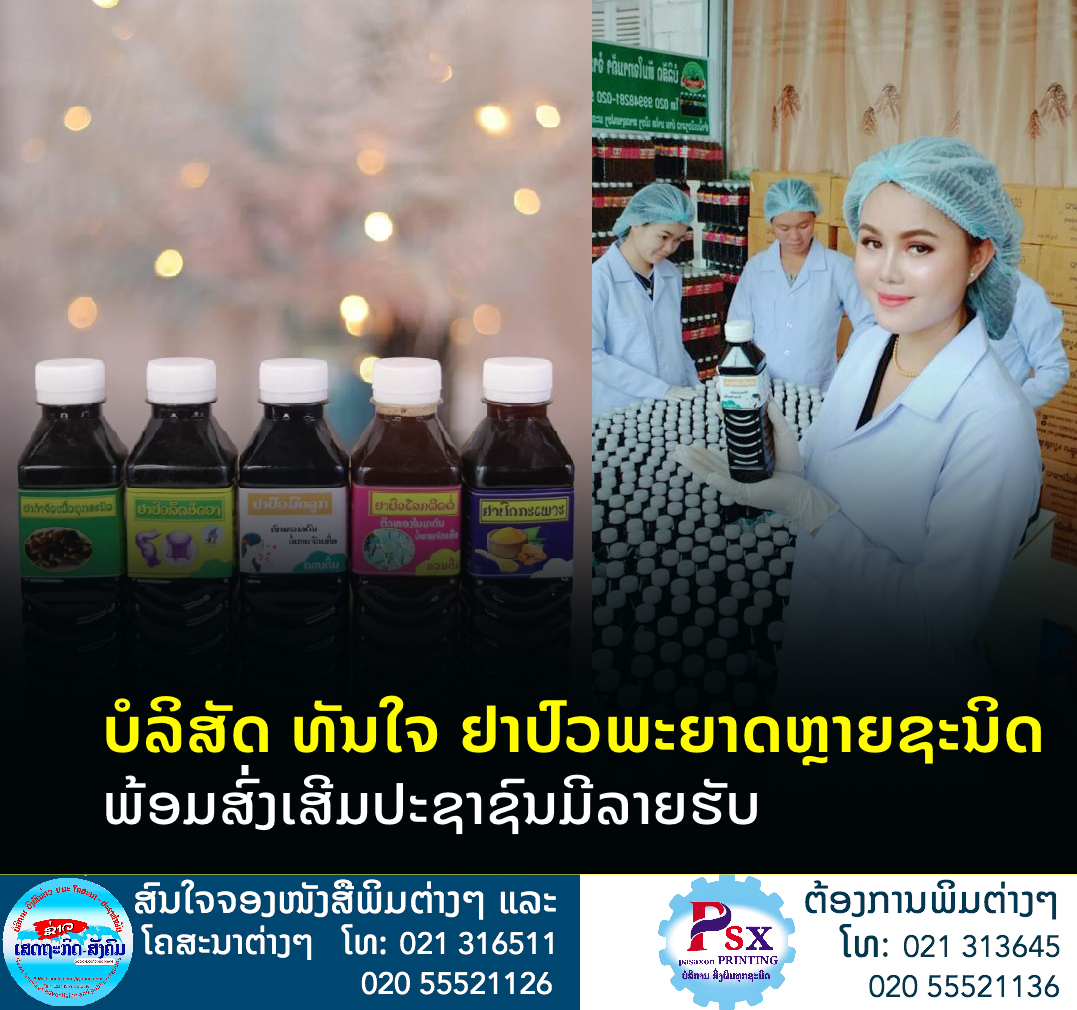 ບໍລິສັດ ທັນໃຈ ການຄ້າຈຳ ກັດຜູ້ດຽວ ຖືເປັນໜຶ່ງບໍລິສັດທີ່ຢູ່ອັນດັບຕົ້ນຂອງລາວທີ່ເພິ່ນມີປະສົບການ ແລະເຫັນຄວາມສຳຄັນຜະລິດຕະພັນຢາພື້ນເມືອງມາຜະລິດຮັກສາຫຼາຍພະຍາດທີ່ຄົນສ່ວນໃຫຍ່ມັກເກີດເຊັ່ນບັນຫາເຈັບມົດລູກ