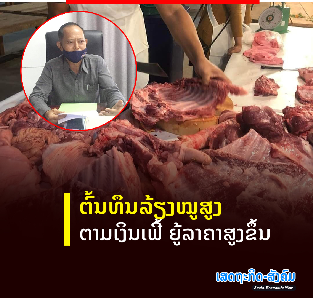 ຕົ້ນທຶນການຜະລິດເຊັ່ນ: ອາຫານໝູ, ໝູນ້ອຍ, ຄ່າຂົນສົ່ງ ແລະ ອັດຕາເງິນເຟີ້, ກາຍເປັນໜຶ່ງໃນປັດໄຈທີ່ເຮັດໃຫ້ລາຄາຊີ້ນໝູຢູ່ທ້ອງຕະຫຼາດນະຄອນຫຼວງວຽງຈັນ ສູງຂຶ້ນ. ອີກໜຶ່ງບັນຫາກໍແມ່ນສະພາບຂາດແຄນໝູຢູ່ປະເທດໃກ້ຄຽງ, ຈິ່ງມີການຂາຍຊີ້ນໝູໄປຕ່າງປະເທດ.