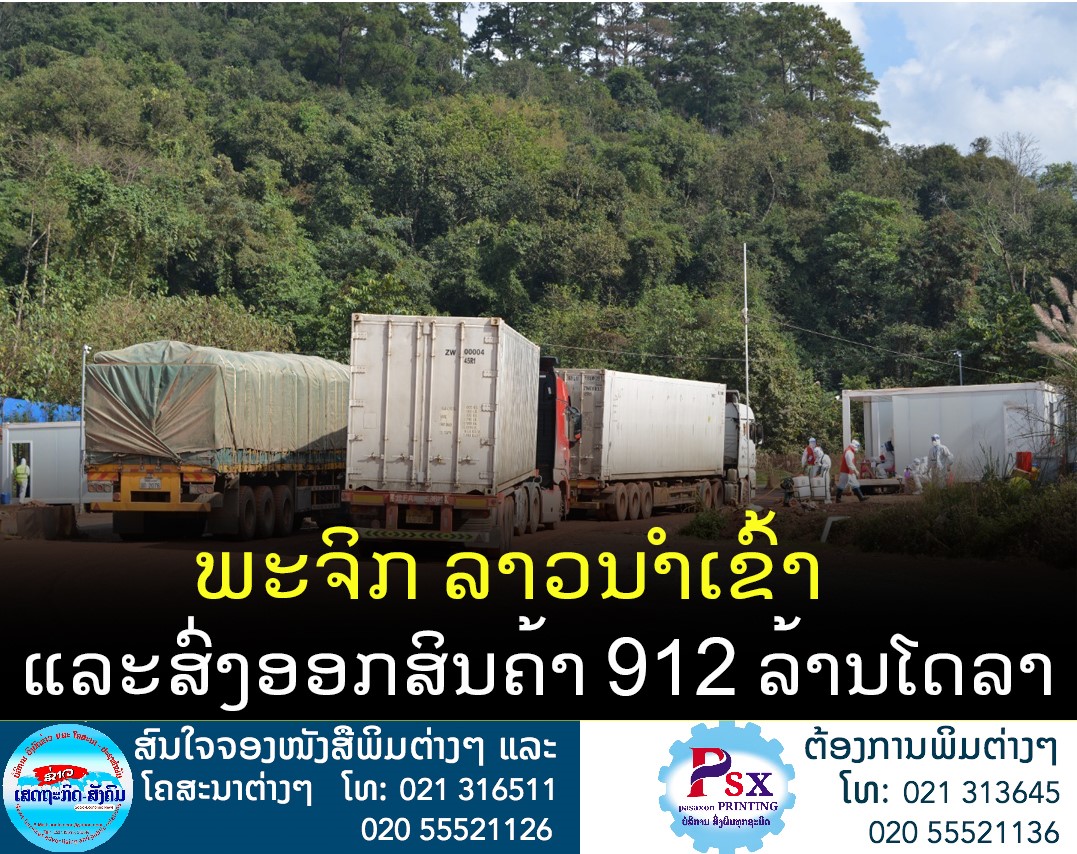 ມູນຄ່າການນໍາເຂົ້າ ແລະສົ່ງ ອອກຂອງ ສປປ ລາວ ປະຈໍາເດືອນພະ ຈິກ ປີ 2021 ບັນລຸໄດ້ປະມານ 912 ລ້ານໂດລາສະຫະລັດ ໃນນັ້ນ, ມູນຄ່າ ການສົ່ງອອກ ມີປະມານ 390 ລ້ານ ໂດລາສະຫະລັດ,