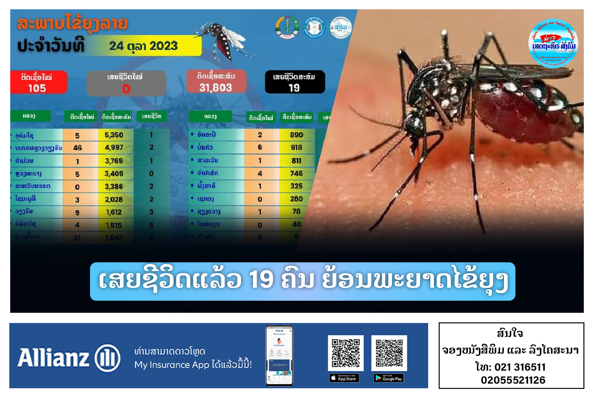 ອີງຕາມຂໍ້ມູນຂອງສູນຂ່າວສານການແພດສຸຂະສຶກສາ ກະຊວງສາທາລະນະສຸກ ໄດ້ລາຍງານໃນວັນທີ 24 ຕຸລາ 2023 ວ່າ:
