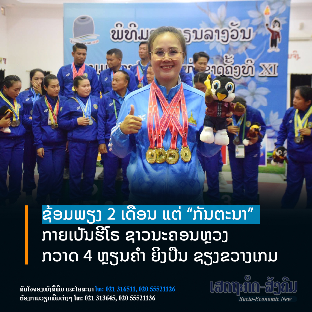 ນາງ ກັນຕະນາ ໄຊຍະລາດ ນັກກິລາແມ້ນປືນນ້ອງໃໝ່ຂອງທັບນັກກິລາຍິງປືນ ນະຄອນຫຼວງວຽງຈັນ ສາມາດແຈ້ງເກີດ ຄວ້າ 2 ຫຼຽນຄໍາ