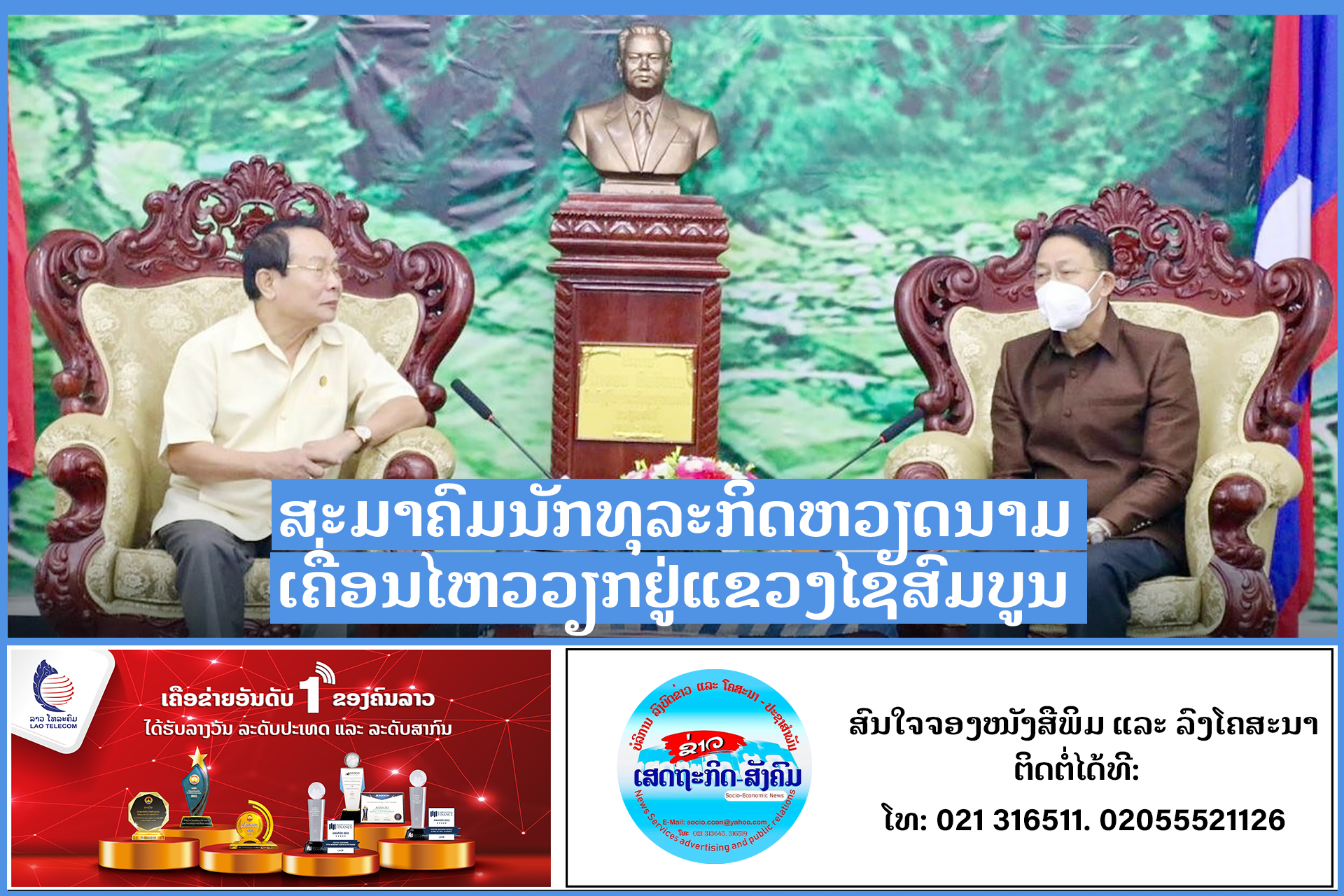 ແຫຼ່ງຂ່າວຈາກແຂວງໄຊສົມບູນ ໃຫ້ຮູ້ວ່າ: ວັນທີ 27 ມີນາ ທີ່ຜ່ານມາ,ທ່ານ ເຢືອງ ດິງ ບັງ ປະທານສະມາຄົມນັກທຸລະກິດຫວຽດນາມ ປະຈຳນະຄອນຫລວງວຽງຈັນ