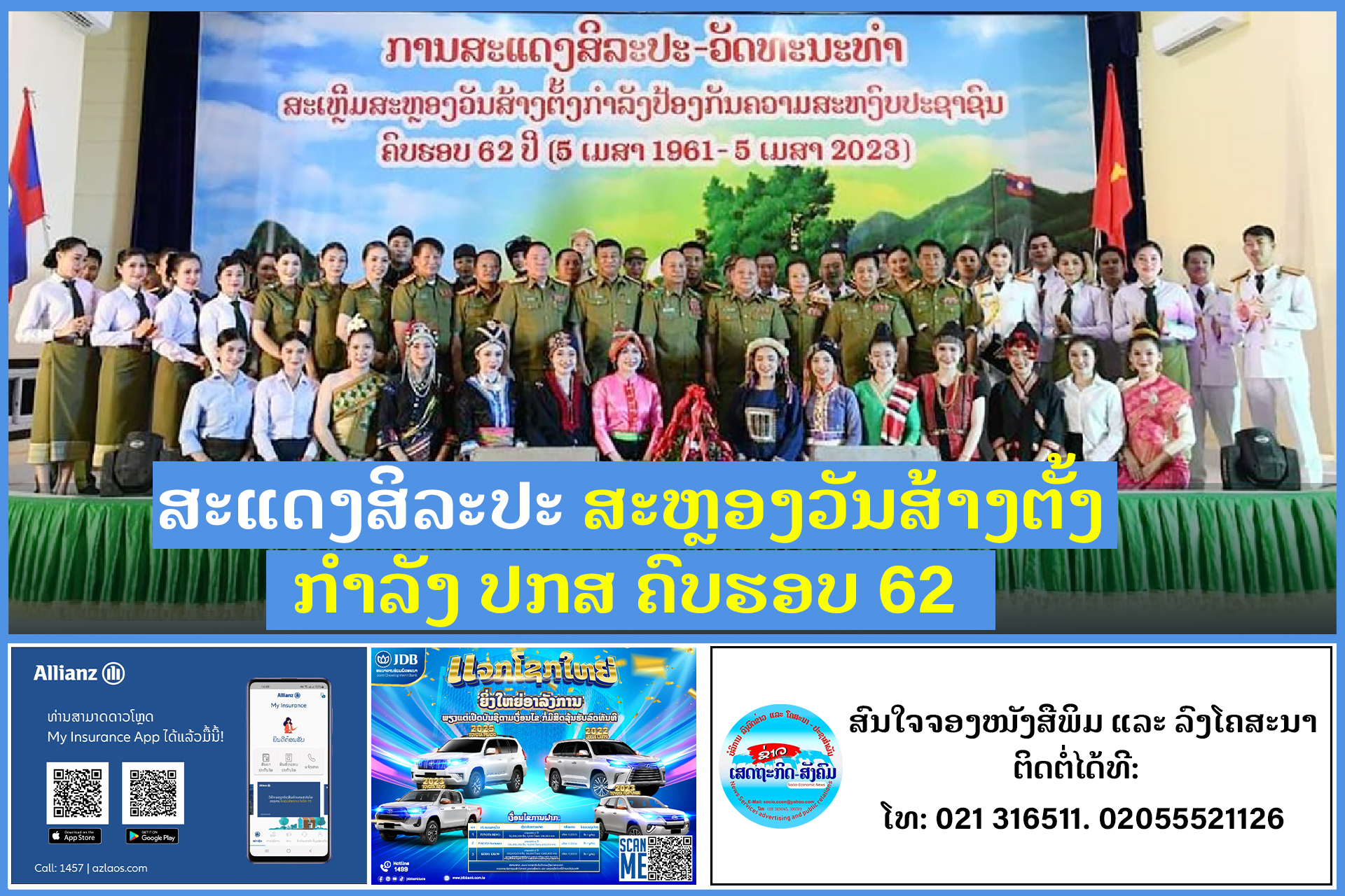 ກອງສິລະປະກອນ ປ້ອງກັນຄວາມສະຫງົບຈັດການສະແດງສິລະປະສະເຫຼີມສະຫຼອງວັນສ້າງຕັ້ງກຳລັງປ້ອງກັນຄວາມສະຫງົບ ຄົບຮອບ 62 ປີ