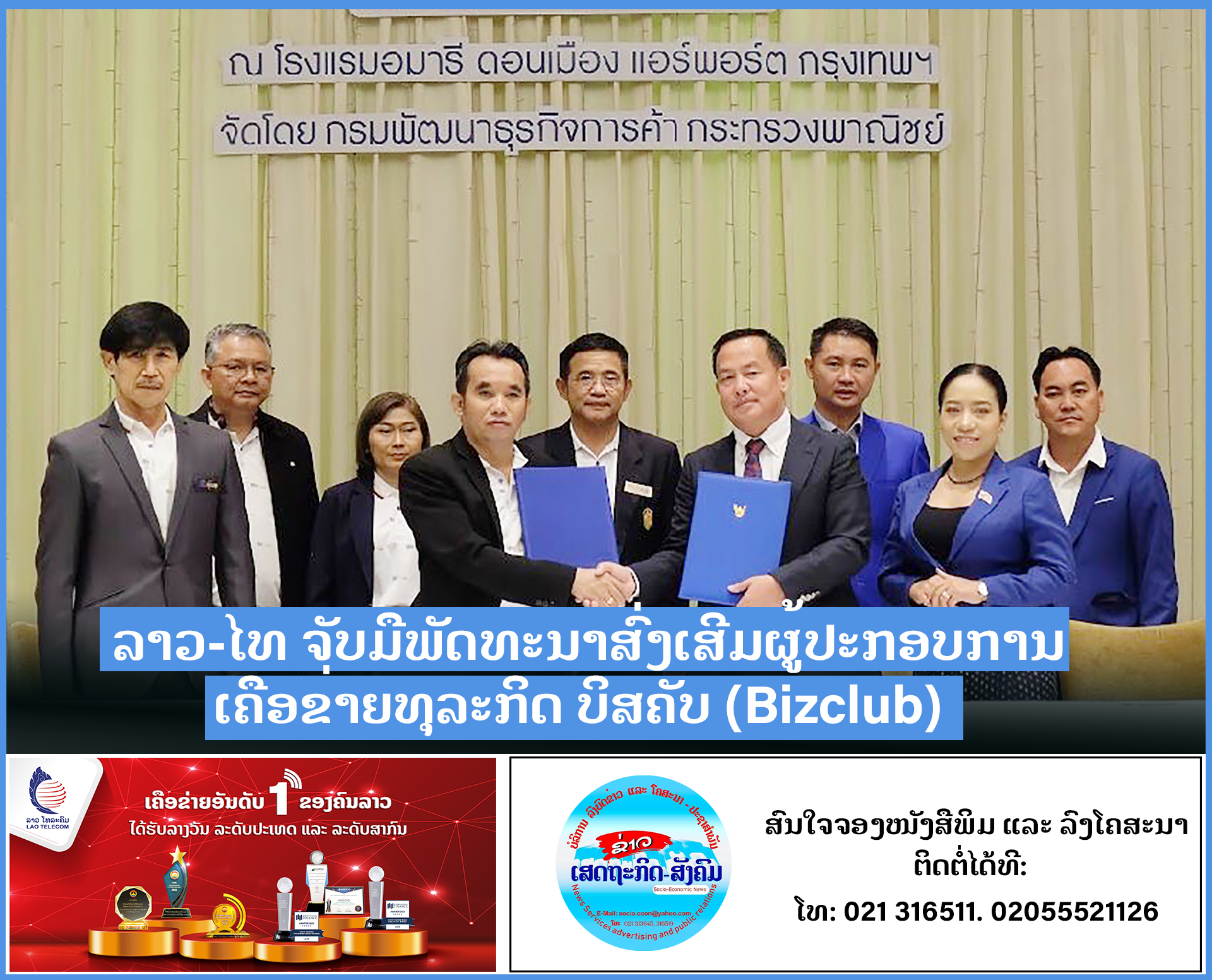 ໃນວັນທີ 28 ມີນາ 2023 ທີ່ໂຮງແຮມອາມາຣີ ດອນເມືອງ ປະເທດໄທ ໄດ້ມີພິທີເຊັນບົດບັນທຶກຄວາມເຂົ້າໃຈລະຫວ່າງເຄືອຂ່າຍທຸລະກິດ ບິສຄັບ (Bizclub) ປະເທດໄທ ແລະສະມາຄົມນັກທຸລະກິດໜຸ່ມແຫ່ງຊາດລາວ