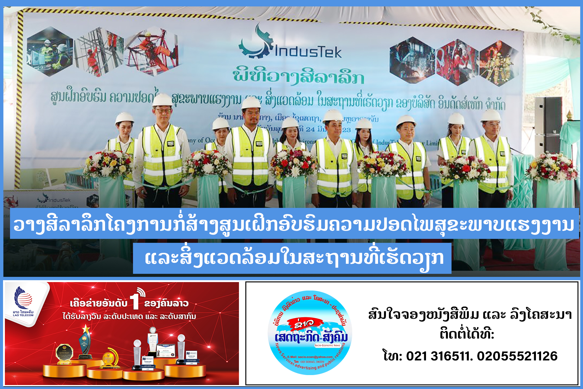 ພິທີວາງສີລາລຶກໂຄງການກໍ່ສ້າງສູນເຝິກອົບຮົມຄວາມປອດໄພສຸຂະພາບແຮງງານ ແລະສິ່ງແວດລ້ອມໃນສະຖານທີ່ເຮັດວຽກຂອງບໍລິສັດ ອິນດັດສ໌ເທັກ ຈໍາກັດ