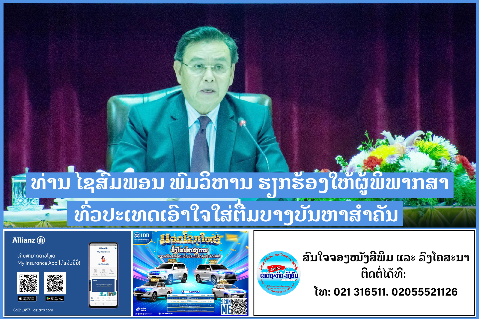 ທ່ານ ໄຊສົມພອນ ພົມວິຫານ ກໍາມະການກົມການເມືອງສູນກາງພັກປະທານສະພາແຫ່ງຊາດໄດ້ໃຫ້ກຽດໂອ້ລົມຕໍ່ກອງປະຊຸມໃຫຍ່ຜູ້ພິພາກສາທົ່ວປະເທດ ຄັ້ງທີ XI,