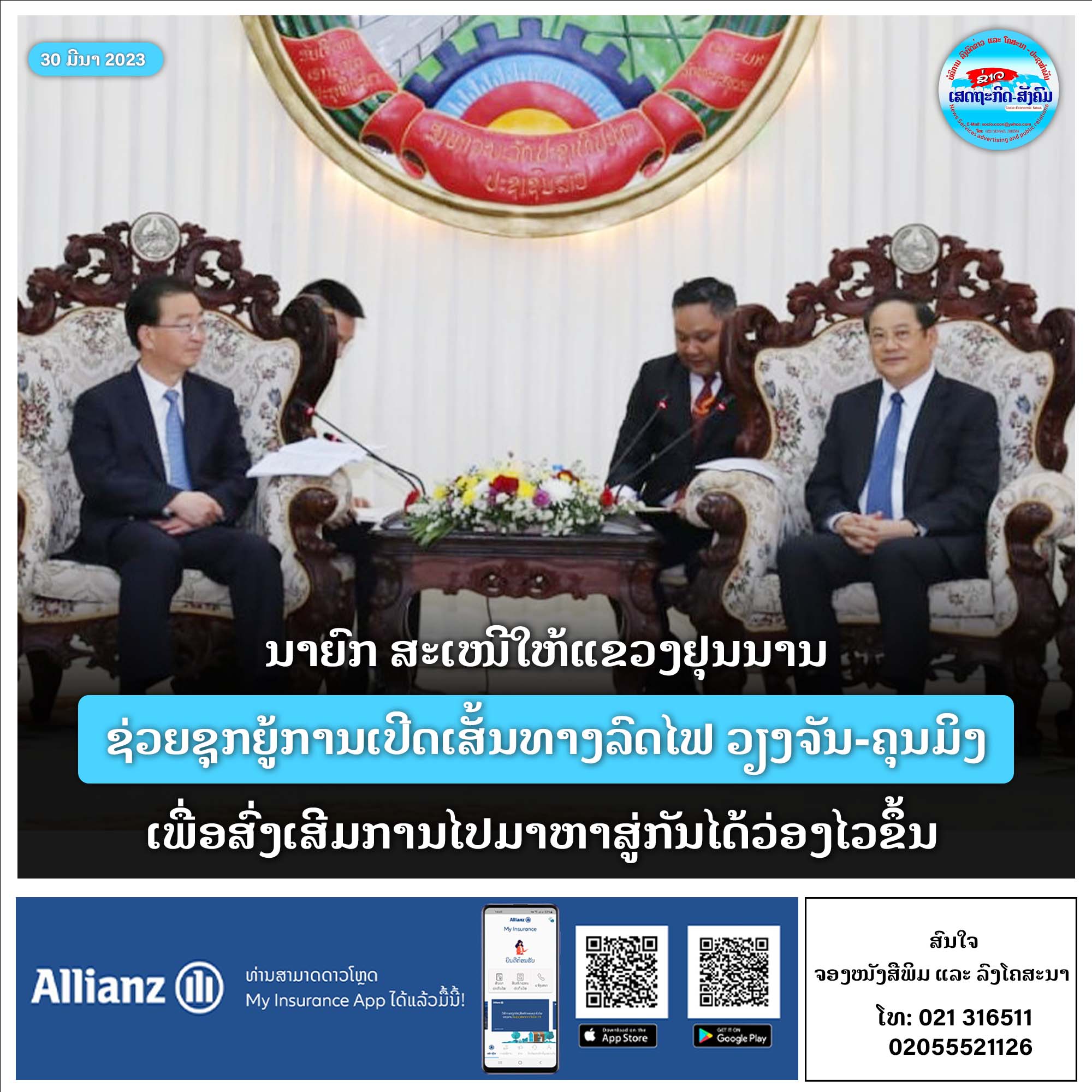 ໃນວັນທີ 29 ມີນາ 2023, ສະຫາຍ ສອນໄຊ ສີພັນດອນ ນາຍົກລັດຖະມົນຕີ ແຫ່ງ ສປປ ລາວ ໄດ້ຕ້ອນຮັບການເຂົ້າຢ້ຽມຂ່ຳນັບຂອງ ສະຫາຍ ຫວັງ ໜິງ ເລຂາພັກແຂວງຢຸນນານ ພ້ອມດ້ວຍຄະນະ,