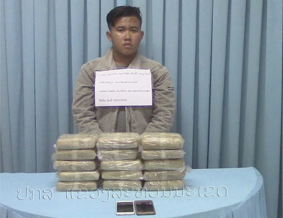 ເຈົ້າໜ້າທີ່ຕຳຫຼວດ, ພະແນກຕຳຫຼວດສະກັດກັ້ນ ແລະ ຕ້ານຢາເສບຕິດ ປກສ ແຂວງສະຫວັນນະເຂດກັກຕົວຜູ້ຄ້າ-ຂາຍ ຢາເສບຕິດ 1 ຄົນ ພ້ອມຢຶດຂອງກາງຢາບ້າໄດ້ 45 ມັດ, ເທົ່າກັບ 90 ພັນເມັດ ໄດ້ໃນວັນທີ 19 ມີນາ 2019.