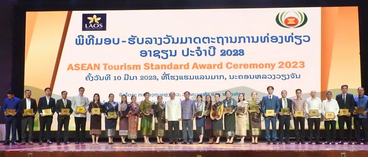 ພິທີມອບ-ຮັບລາງວັນ ມາດຕະຖານທ່ອງທ່ຽວອາຊຽນ ປະຈຳປີ 2023 ໃຫ້ກັບຫົວໜ່ວຍທຸລະກິດ ແລະຊຸມຊົນທີ່ສາມາດຜ່ານຕາມເງື່ອນໄຂທີ່ບັນດາປະເທດສະມາຊິກອາຊຽນກຳນົດໄວ້ໃນແຕ່ລະມາດຖານໄດ້ຈັດຂຶ້ນໃນວັນທີ 10 ມີນານີ້,