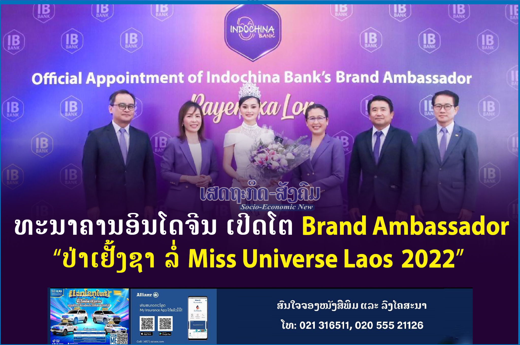 ເມື່ອວັນທີ 8 ມີນາ 2023, ທີ່ສຳນັກງານໃຫຍ່ ທະນາຄານອິນໂດຈີນ ນະຄອນຫຼວງວຽງຈັນ ໄດ້ມີພິທີເປີດໂຕ Brand Ambassador ຄົນທຳອິດຂອງທະນາຄານ ເຊິ່ງກໍຄື ປ່າເຢັ້ງຊາ ລໍ່ Miss Universe Laos 2022.