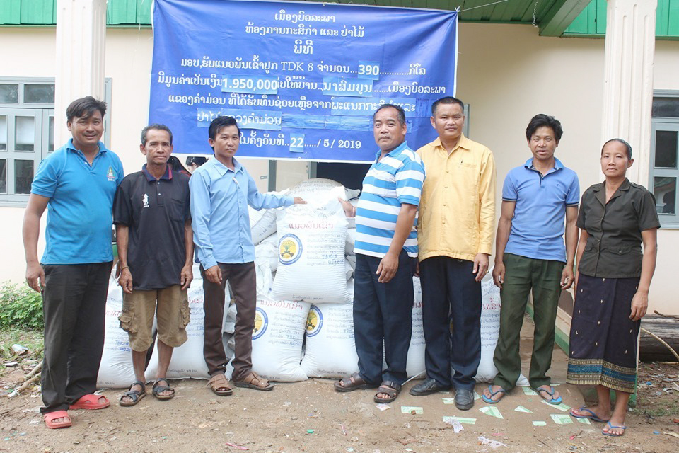 ຫ້ອງການກະສິກໍາ ແລະປ່າໄມ້ເມືອງບົວລະພາ ແຂວງຄໍາມ່ວນ ໄດ້ນໍາເອົາແນວພັນເຂົ້າປູກທ່າດອກຄໍາ 8 ຈໍານວນ 6 ພັນກວ່າກິໂລ ໄປມອບໃຫ້ພໍ່ແມ່ປະຊາຊົນ 14 ບ້ານພາຍໃນເທສະບານເມືອງ.