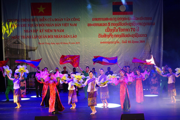 ໃນວັນທີ 3 ມັງກອນ 2019 ນະຄອນຫຼວງວຽງຈັນ ຄະນະສິລະປະກອນທະຫານເຂດ 5 ກອງທັບປະຊາຊົນຫວຽດນາມ ໄດ້ຈັດງານສະແດງສິລະປະເພື່ອເປັນການຮ່ວມສະເຫຼີມສະຫຼອງວັນສ້າງຕັ້ງກອງທັບປະຊາຊົນລາວ ຄົບຮອບ 70 ປີ ໂດຍການເຂົ້າຮ່ວມຂອງ ທ່ານ ພົນຕີ ທອງ ລອຍ ສິລະວົງ ຮອງລັດຖະມົນຕີກະຊວງປ້ອງກັນປະເທດຫົວໜ້າກົມໃຫຍ່ການເມືອງກອງທັບ, ທ່ານ ພັນເອກ ຫງວຽນວັນແທງ ຫົວໜ້າ ການເມືອງກອງສິລະປະກອນທະຫານເຂດ 5 ພ້ອມດ້ວຍນັກສິລະປິນ, ບັນດານາຍ ແລະພົນທະຫານ, ນາຍ ແລະພົນຕຳຫຼວດ ແລະມວນ ຊົນເຂົ້າຮ່ວມຢ່າງຫຼວງຫຼາຍ.