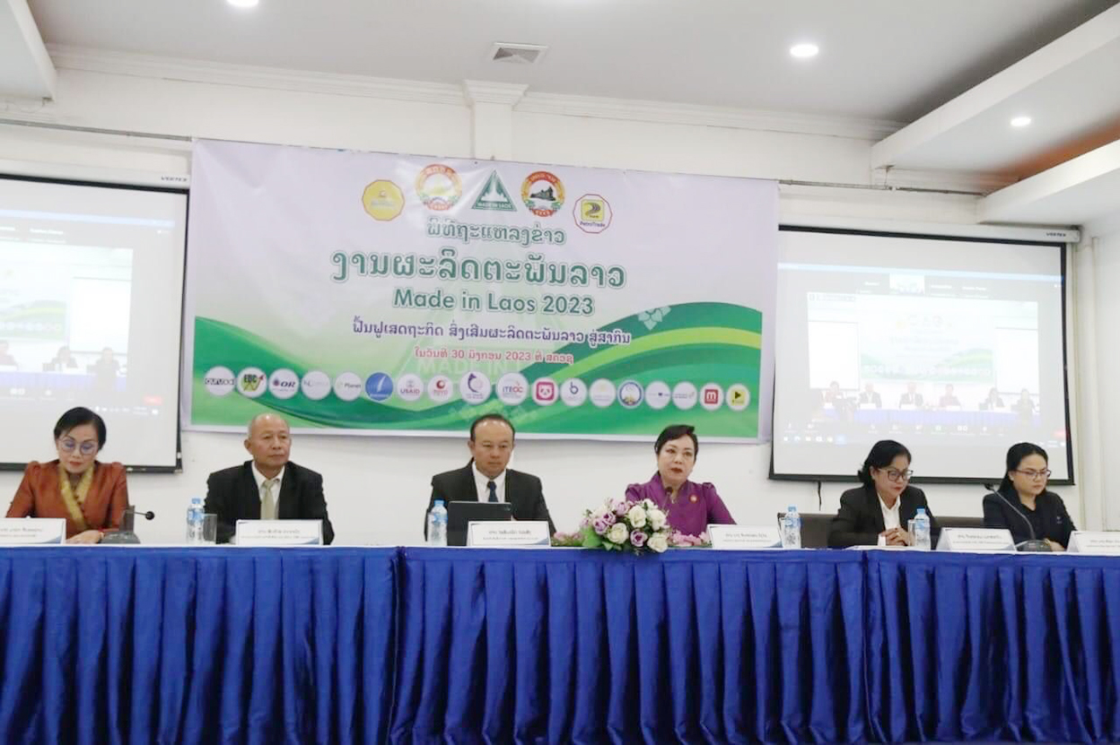 ພິທີຖະແຫຼງຂ່າວງານຜະລິດຕະພັນລາວ 2023 (Made In Laos 2023) ໄດ້ຈັດຂຶ້ນໃນວັນທີ 30 ມັງກອນນີ້ ທີ່ຫ້ອງປະຊຸມສະພາການຄ້າ ແລະອຸດສາຫະ ກຳແຫ່ງຊາດລາວ (ສຄອຊ) ໂດຍການເປັນປະທານຮ່ວມຂອງທ່ານ ໄຊສົມເພັດ ນໍລະສິງ ຫົວໜ້າກົມສົ່ງເສີມການຄ້າກະຊວງອຸດສາຫະກໍາ ແລະການຄ້າ,