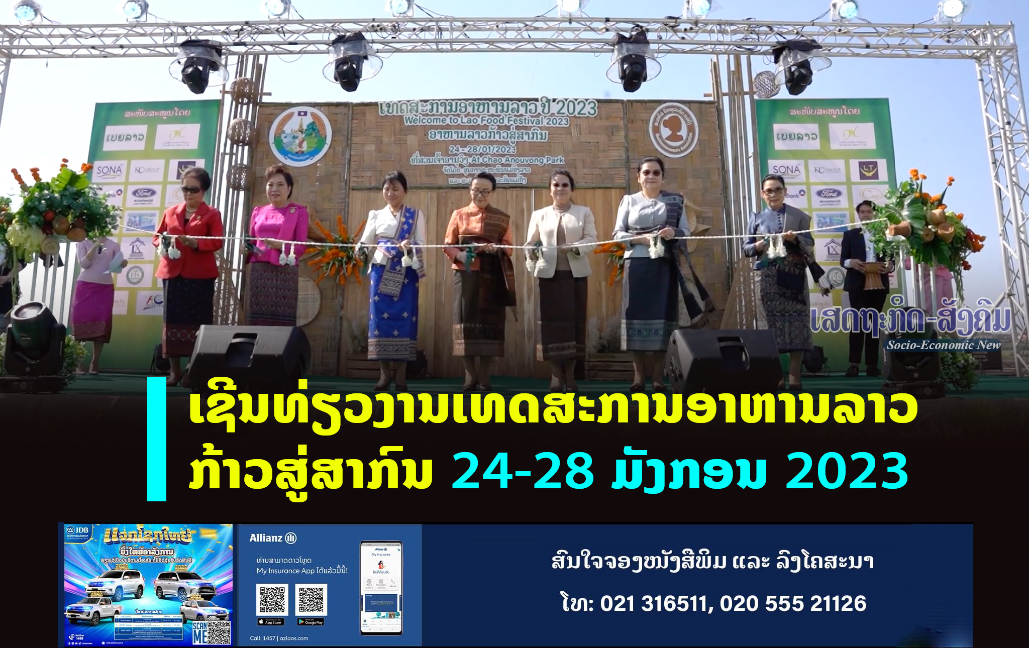 ສູນກາງສະຫະພັນແມ່ຍິງລາວຮ່ວມກັບສະມາຄົມນັກທຸລະກິດແມ່ຍິງໄດ້ເປີດງານເທດສະການອາຫານລາວປະຈໍາປີ 2023 ພາຍໃຕ້ຄໍາຂວັນ"ເທດສະການອາຫານລາວ ກ້າວສູ່ສາກົນ" ຂຶ້ນໃນວັນທີ 24ມັງກອນ 2023 ທີ່ສວນສາທາລະນະເຈົ້າອະນຸວົງ ເມືອງຈັນທະບູລີ ນະຄອນຫລວງວຽງຈັນ.