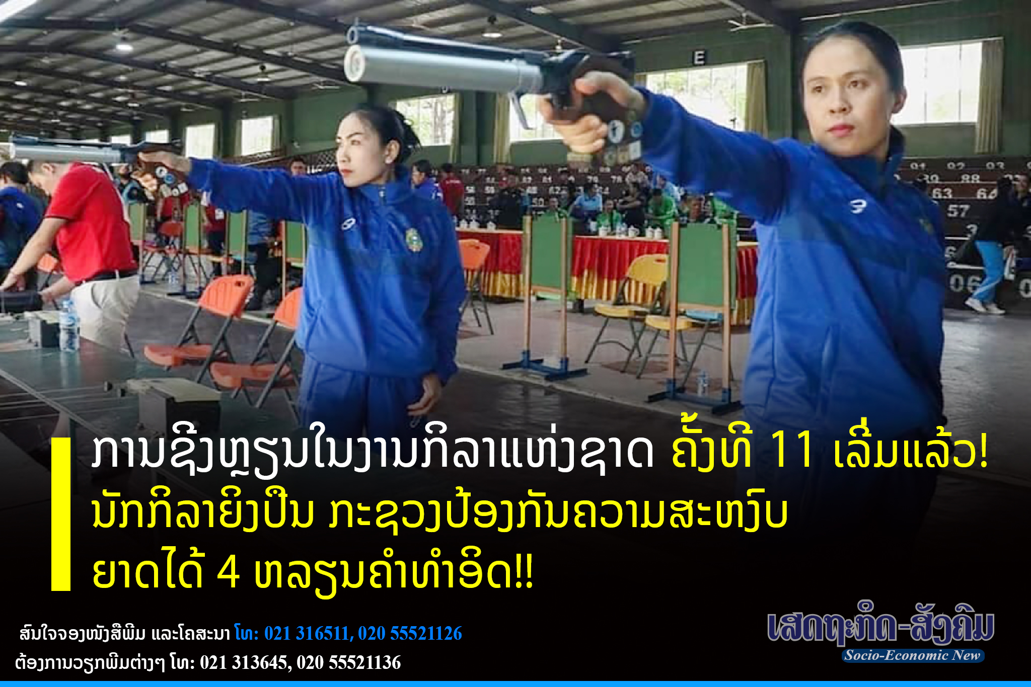 ກິລາຍິງປືນ ໃນງານມະຫາກຳກິລາແຫ່ງຊາດ ຄັ້ງທີ 11 ເປັນກິລາທຳອິດທີ່ທຳການແຂ່ງຂັນກ່ອນກິລາປະເພດອື່ນໆ ເລີ່ມແຂ່ງຂັນວັນທີ 14 ພະຈິກນີ້ ທີ່ສະໜາມກິລາຍຶງປືນ 5 ເມສາ ນະຄອນຫລວງວຽງຈັນ, ຊຶ່ງກິລາຍິງປືນ ເປັນ 1 ໃນ 2 ປະເພດກິລາມາແຂ່ງຂັນຢູ່ນະຄອນຫລວງຕໍ່ຈາກກິລາລອຍນໍ້າ.