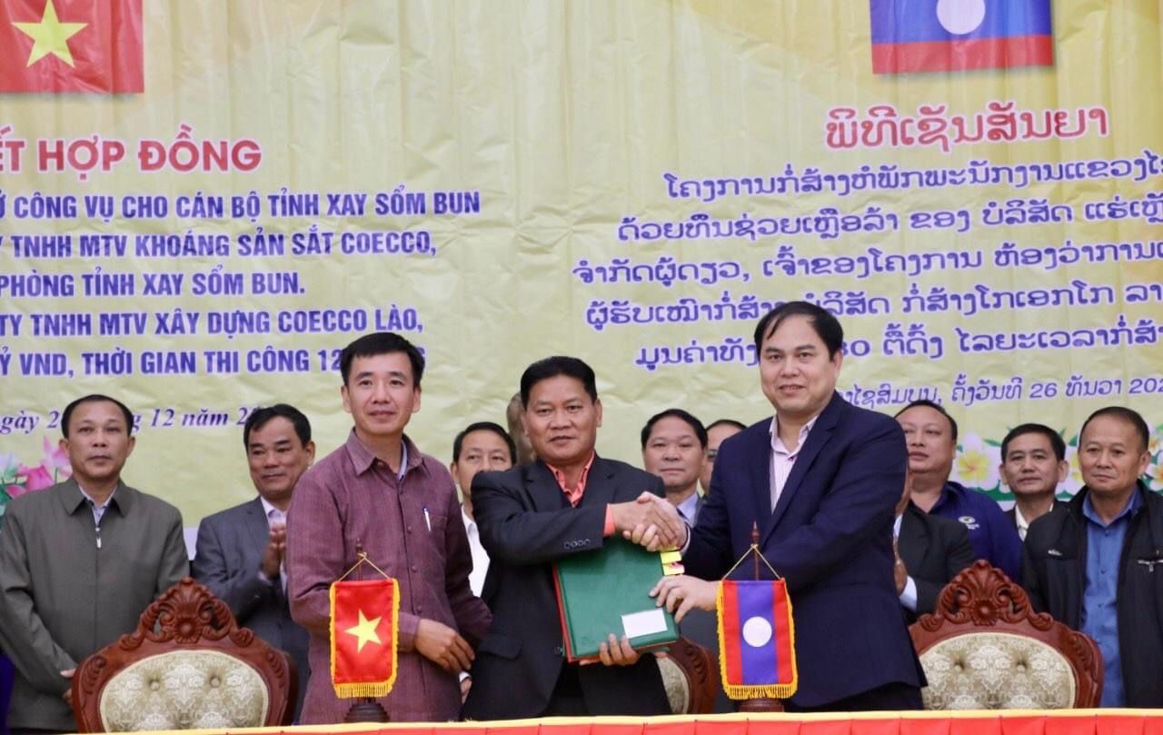 ອົງການປົກຄອງ ແຂວງໄຊສົມບູນ ແລະບໍລິສັດ ແຮ່ເຫລັກ ໂກເອກໂກ ຈຳກັດຜູ້ດຽວ ໄດ້ເຊັນສັນຍາໂຄງການກໍ່ສ້າງຫໍພັກພະນັກງານດ້ວຍທຶນຊ່ວຍເຫລືອລ້າຂຶ້ນໃນຕອນບ່າຍຂອງວັນທີ 26 ທັນວາ 2022 ທີ່ຫ້ອງປະຊຸມຫ້ອງວ່າການແຂວງ ໂດຍການເຂົ້າຮ່ວມຂອງສະຫາຍ ພອຍຄຳ ຮຸ່ງບຸນຍວງ ເຈົ້າແຂວງໄຊສົມບູນ,