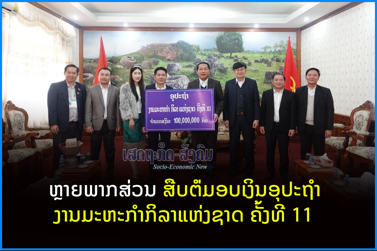 ບັນດາບໍລິສັດຫ້າງຮ້ານຫຼາຍພາກສ່ວນເປັນຕົ້ນແມ່ນ ບໍລິສັດ ລາວສຳພັນ ພັດທະນາ ຈໍາກັດ ມອບເງິນ 100 ລ້ານກີບ, ສາຂາທະນາຄານແຫ່ງ ສປປ ລາວ