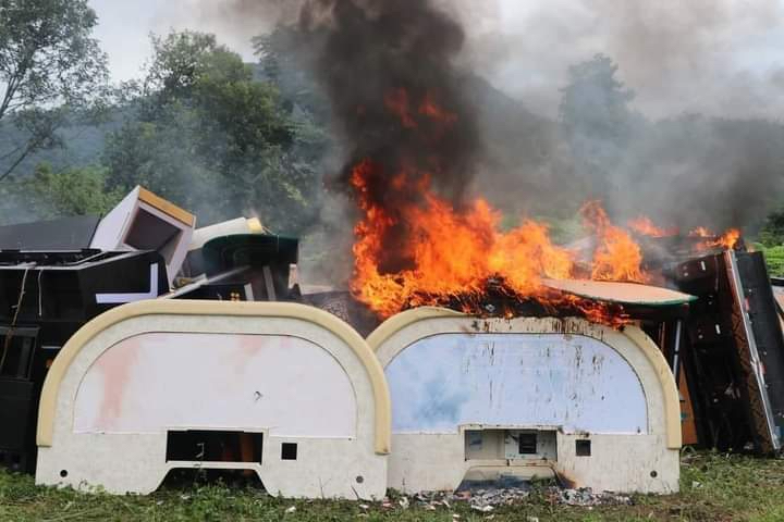 ວັນທີ 28 ສິງຫາ 2023 ກອງບັນຊາການ ປກສ ແຂວງອຸດົມໄຊ ຈູດທໍາລາຍຂອງກາງຄະດີປະເພດອຸປະກອນການພະນັນທີ່ຕ້ອງຫ້າມຫລາຍລາຍການໃນນີ້ມີຕູ້ເກມ 3 ໜ່ວຍ, ໜ້າຈໍ 66 ເຄື່ອງ, ເຕົາໝູນ 2 ເຕົາ, ໄພ້ 8 ແກັດ,