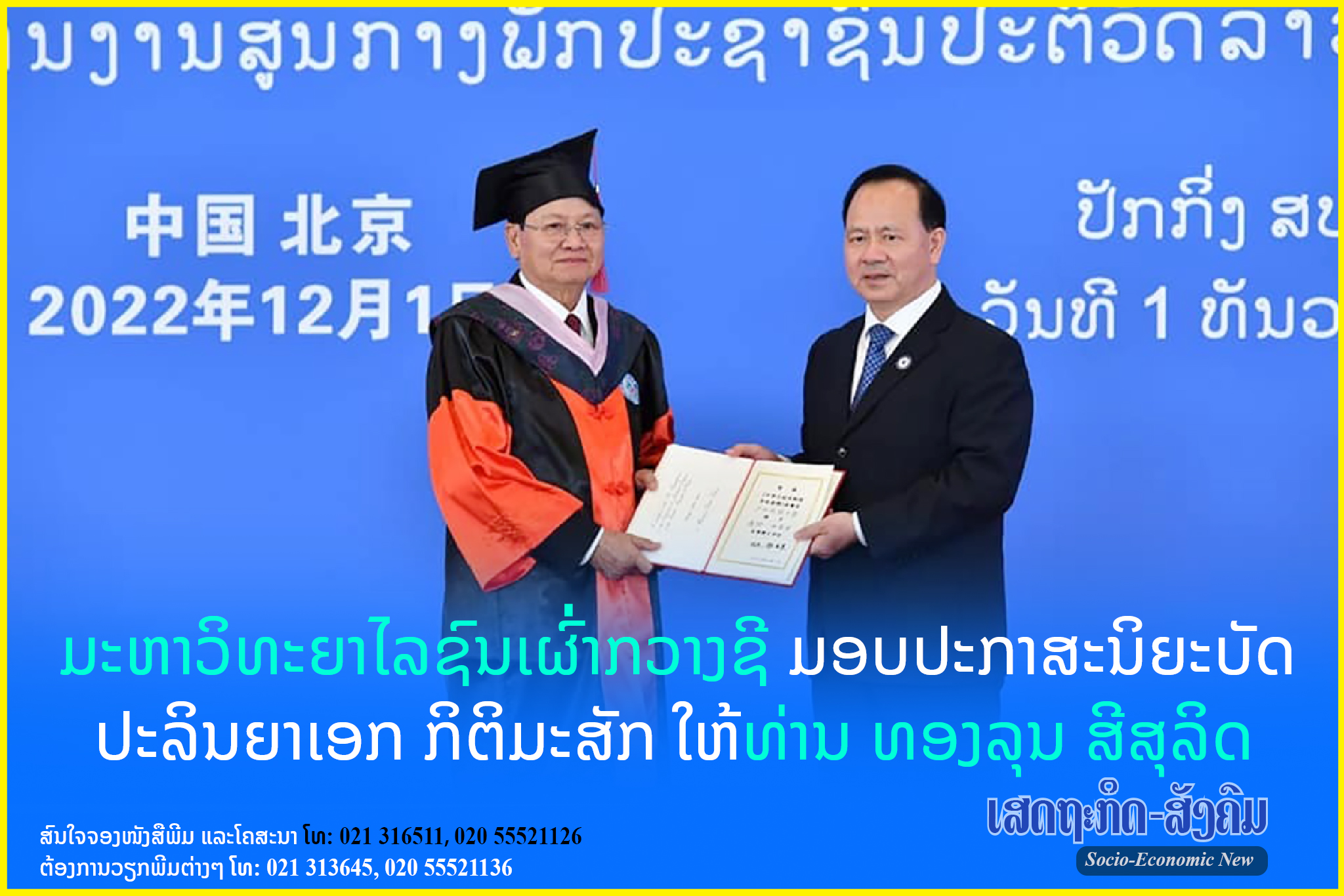 ໃນວັນທີ 1 ທັນວາ ທີ່ຜ່ານມາ, ມະຫາວິທະຍາໄລຊົນເຜົ່າກວາງຊີ ຈັດພິທີມອບໃບປະກາສະນິຍະບັດ ປະລິນຍາເອກກິຕິມະສັກ ສາຂາພາສາ