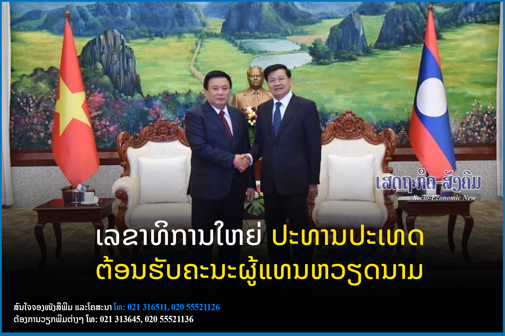ສະຫາຍ ທອງລຸນ ສີສຸລິດ ເລຂາທິການໃຫຍ່ ປະທານປະເທດ ແຫ່ງ ສປປ ລາວ ໄດ້ຕ້ອນຮັບການເຂົ້າຢ້ຽມຂໍ່ານັບຂອງສະຫາຍ ຫງວຽນ ຊວນ ຖັງ