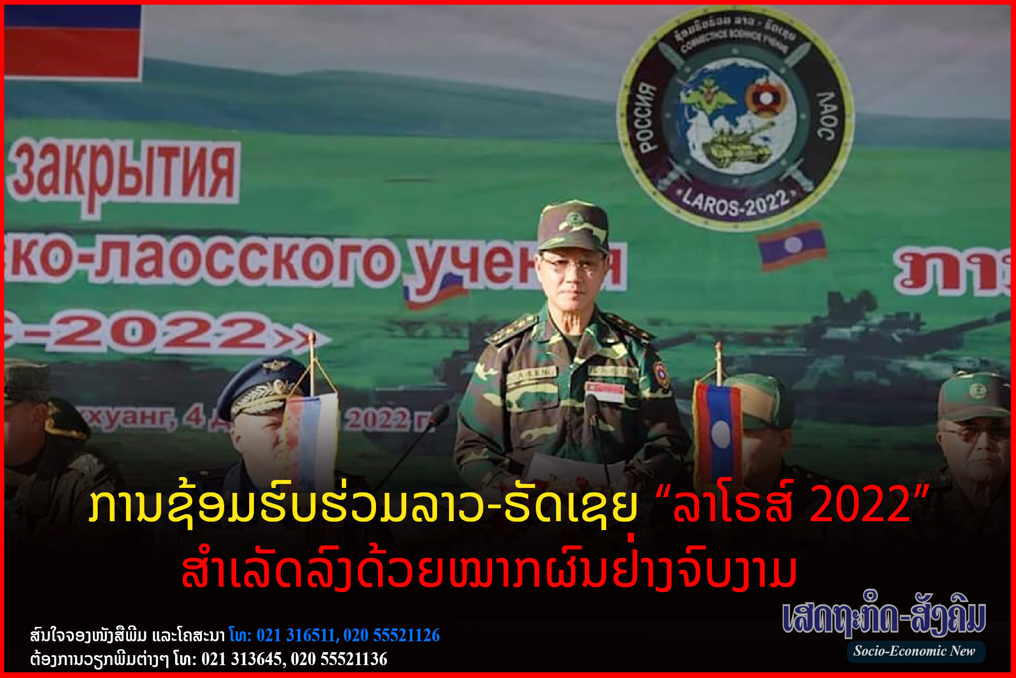 ການຊ້ອມຮົບຮ່ວມລາວ-ຣັດເຊຍ “ລາໂຣສ໌ 2022” ພາຍໃຕ້ຄໍາຂັວນ “ຄຽງບ່າ, ຄຽງໄຫຼ່ກັນຕໍ່ສູ້ເພື່ອສັນຕິພາບ ແລະ ຄວາມໝັ້ນຄົງ”,