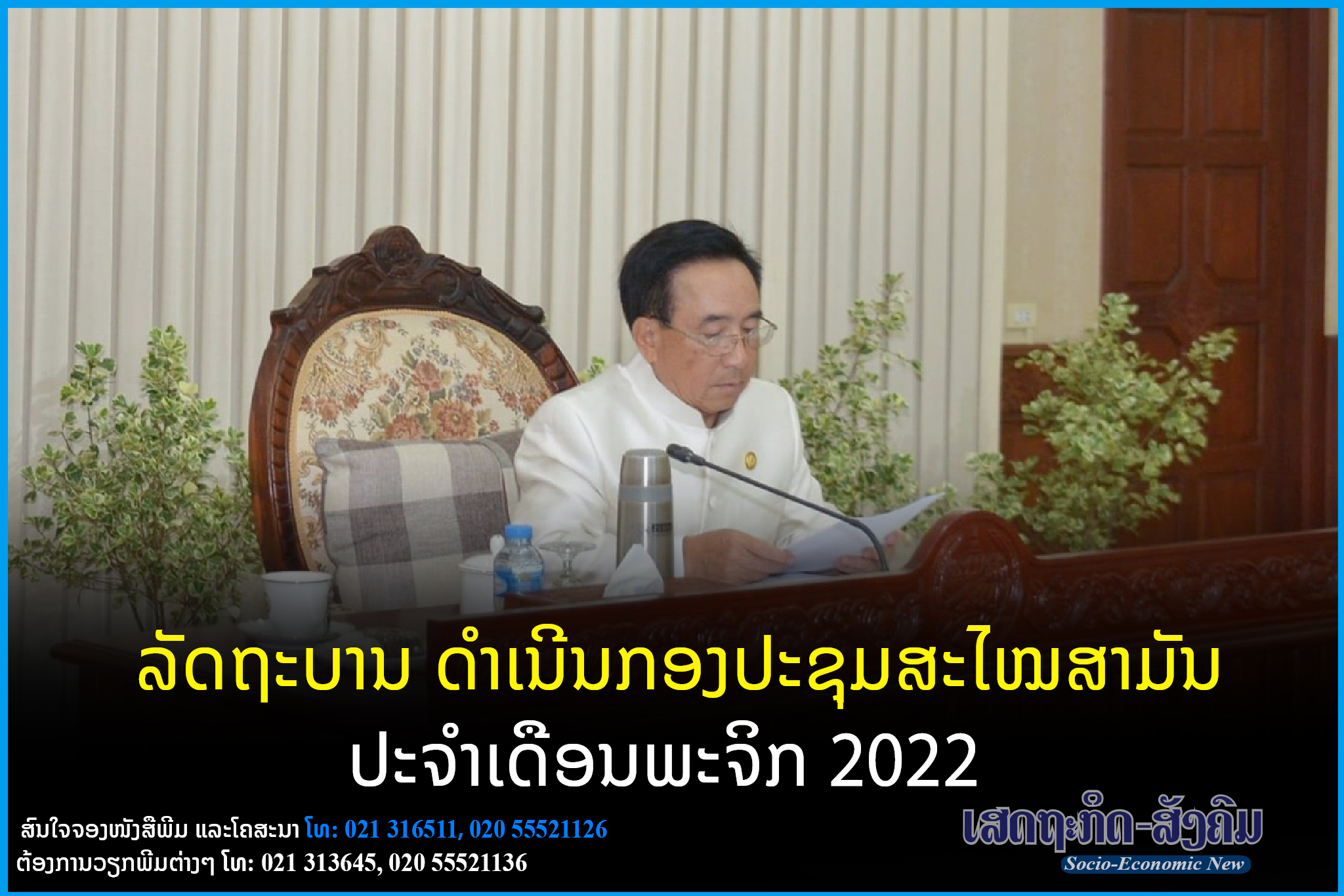 ອງປະຊຸມລັດຖະບານ ສະໄໝສາມັນ ປະຈຳເດືອນພະຈິກ 2022 ໄດ້ໄຂຂຶ້ນຢ່າງເປັນທາງການໃນວັນທີ 21 ພະຈິກ 2022 ທີ່ສໍານັກງານນາຍົກລັດຖະມົນຕີ, ພາຍໃຕ້ການເປັນປະທານຂອງທ່ານ ພັນຄໍາ ວິພາວັນ ນາຍົກລັດຖະມົນຕີ, ມີບັນດາທ່ານຮອງນາຍົກລັດຖະມົນຕີ