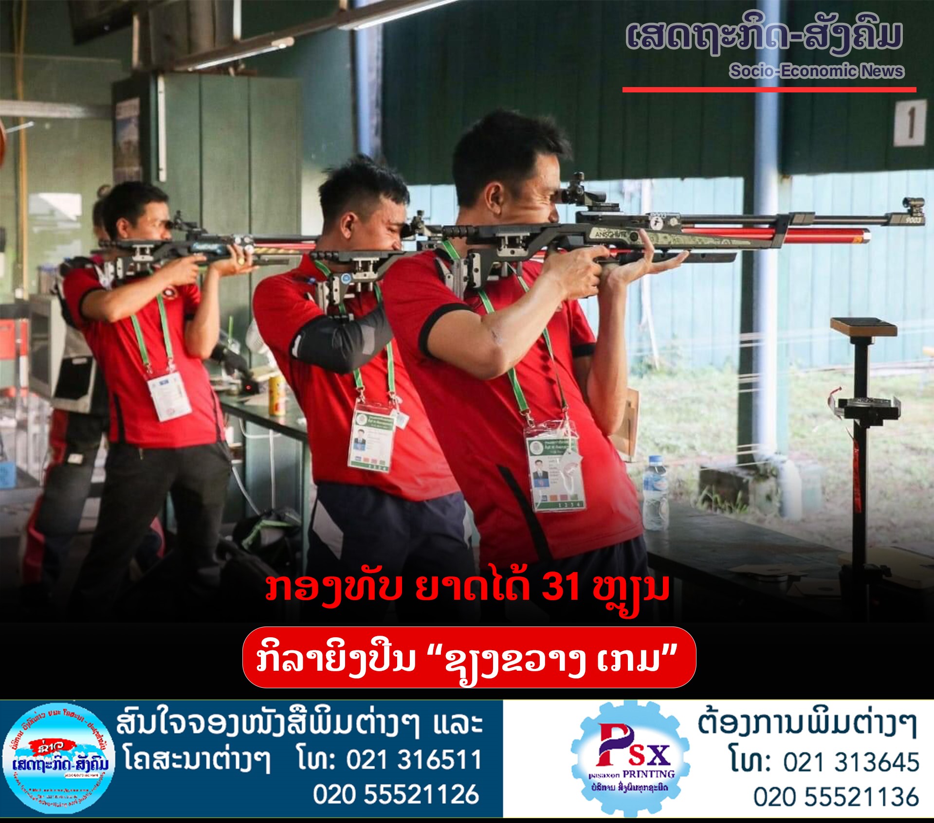 ທີມນັກກິລາຍິງປືນ ກະຊວງປ້ອງກັນປະເທດ ຫຼື ກອງທັບ ສ້າງຜົນງານໄດ້ຢ່າງໂດເດັ່ນ ສາມາດຍາດມາໄດ້ເຖິງ 10 ຫຼຽນຄຳ, 11 ຫຼຽນເງິນ ແລະ 10 ຫຼຽນທອງ ລວມທັງໝົດ 31 ຫຼຽນ