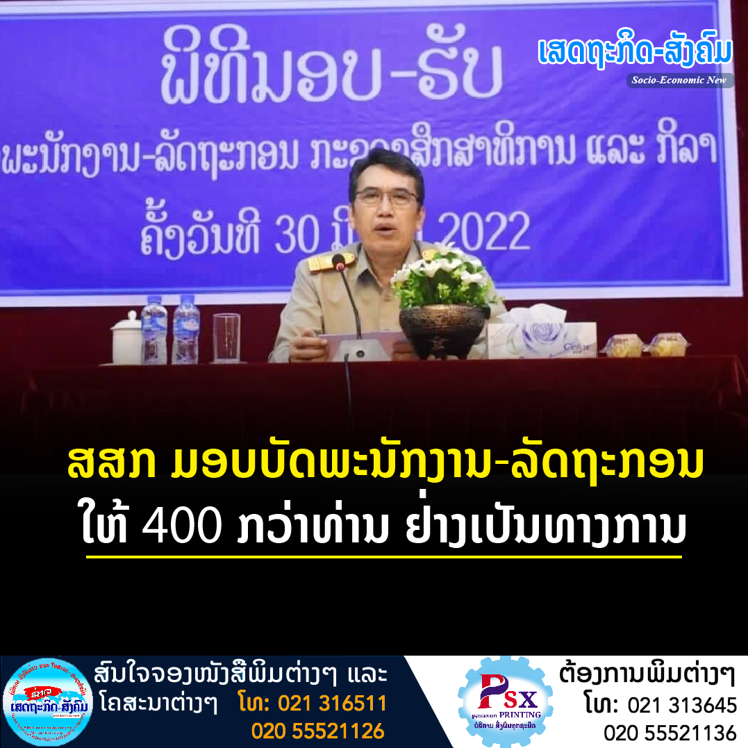 ກະຊວງສຶກສາທິການ ແລະກິລາ (ສສກ) ໄດ້ຈັດພິທີມອບບັດພະນັກງານ-ລັດຖະກອນໃຫ້ແກ່ພະນັກງານ-ລັດຖະກອນ ຈຳນວນ 401 ທ່ານ ຢ່າງເປັນທາງການ ເມື່ອວັນທີ 30 ມິຖຸນາ ຜ່ານມາ ທີ່ສະໂມສອນໃຫຍ່ ມະຫາວິທະຍາໄລແຫ່ງຊາດ,