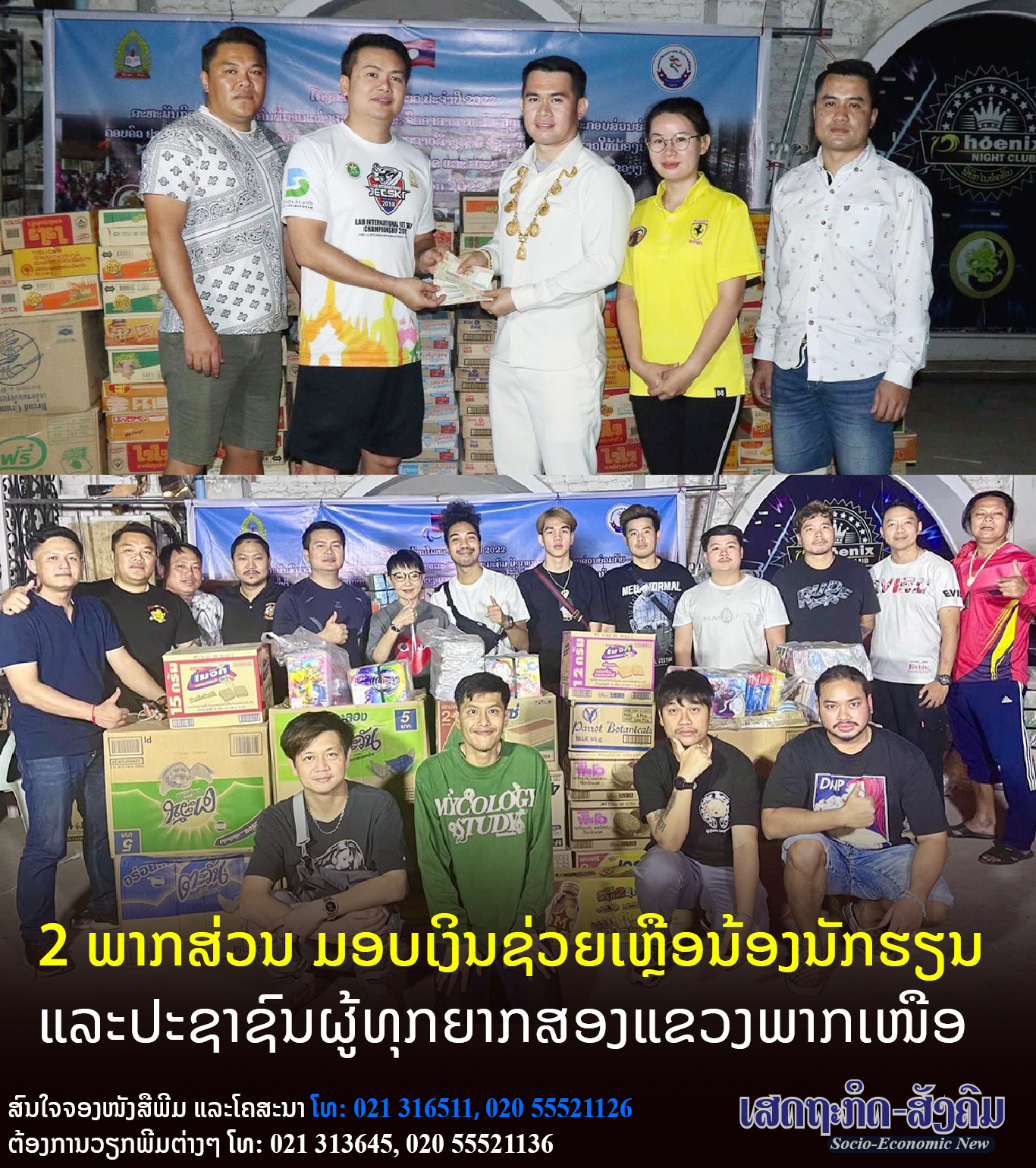 ທ່ານ ບຸນມີ ຫຼ່ຽມໄຊຍະຈັກ ປະທານສະໂມສອນຟຸດຊໍ ເບ ປີ້ງແບ້ ສະຫວັນ ມອບເງິນ 5 ລ້ານກີບ ແລະທ່ານ ໄພລະຄອນ ບຸນວິຊຽນ ເຈົ້າຂອງຮ້ານຂາຍເຄື່ອງກິລາ ຍີ່ຫໍ້ ໄອ-ສະປອດ ມອບເງິນ 1 ລ້ານກີບ ໃຫ້ແກ່ສະຫະພັນກິລາແລ່ນ-ລານຄົນພິການແຫ່ງຊາດລາວ