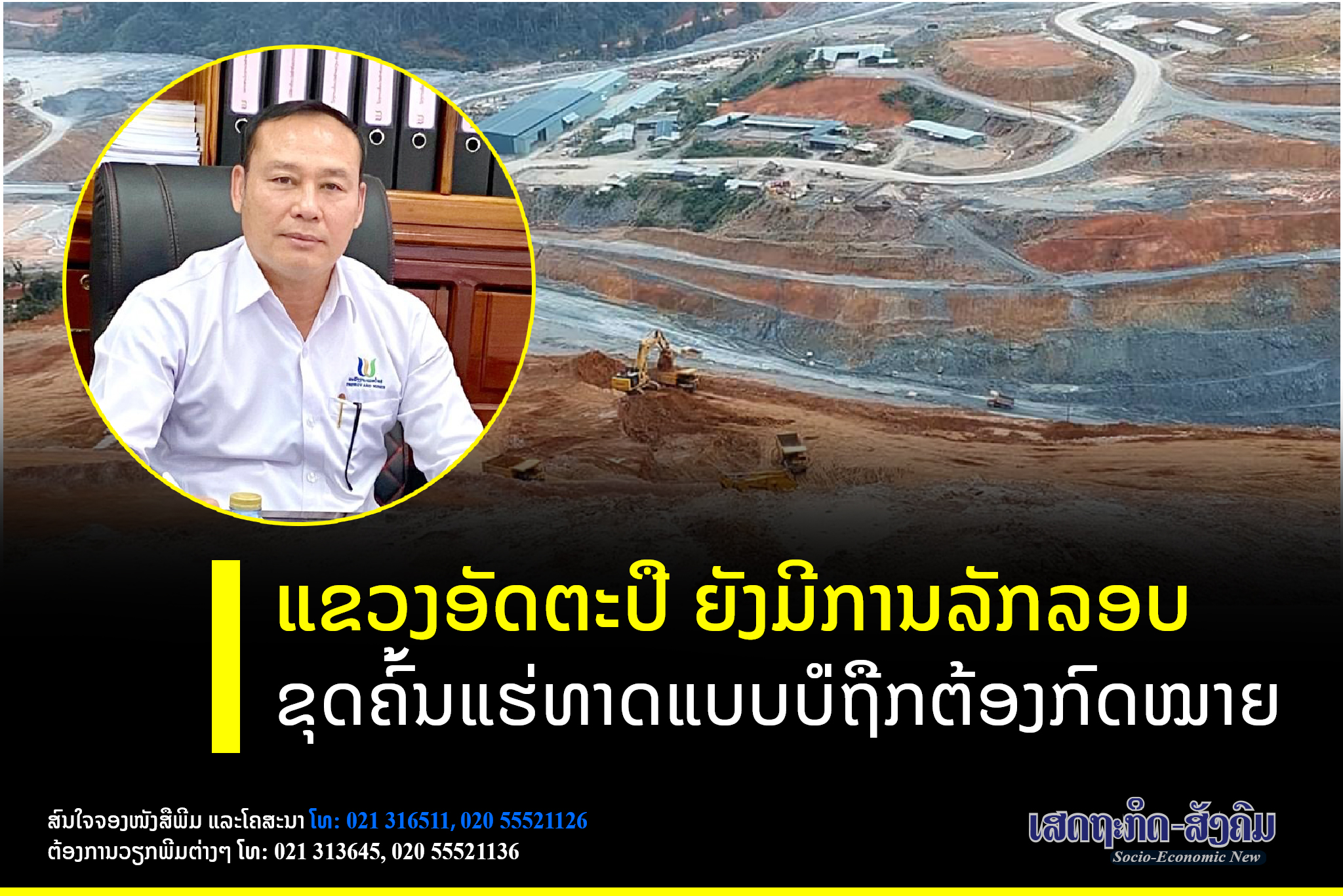 ຕາມການລາຍງານຈາກ ທ່ານ ວິທະຍາ ພົມມະຈັນ ຫົວໜ້າພະແນກພະລັງງານ ແລະ ບໍ່ແຮ່ ແຂວງອັດຕະປື ຕໍ່ກອງປະຊຸມອົງການປົກຄອງແຂວງ ປະຈໍາງວດ III ເມື່ອບໍ່ດົນນີ້ວ່າ: ແຂວງອັດຕະປື ຍັງເກີດມີກຸ່ມຄົນສວຍໂອກາດເຂົ້າມາລັກລອບຂຸດຄົ້ນ,