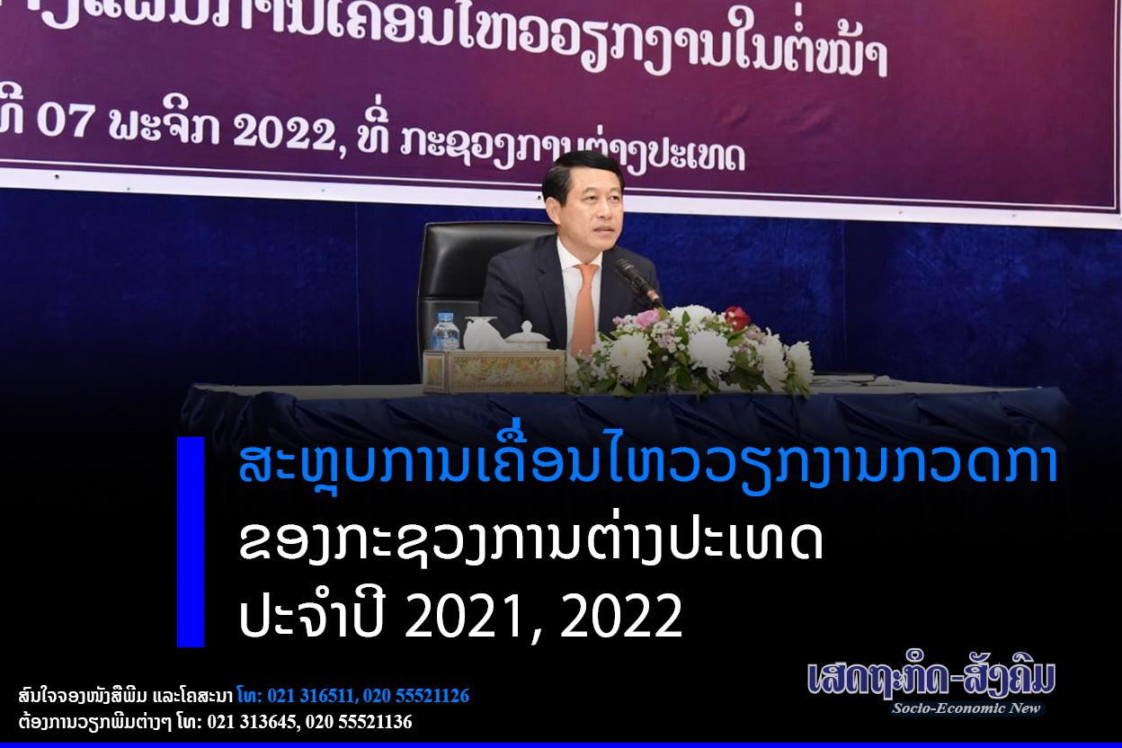 ໃນວັນທີ 7 ພະຈິກ 2022 ທີ່ກະຊວງການຕ່າງປະເທດໄດ້ຈັດກອງປະຊຸມສະຫຼຸບການເຄື່ອນໄຫວວຽກງານກວດກາຂອງກະຊວງການຕ່າງປະເທດ ປະຈຳປີ 2021,