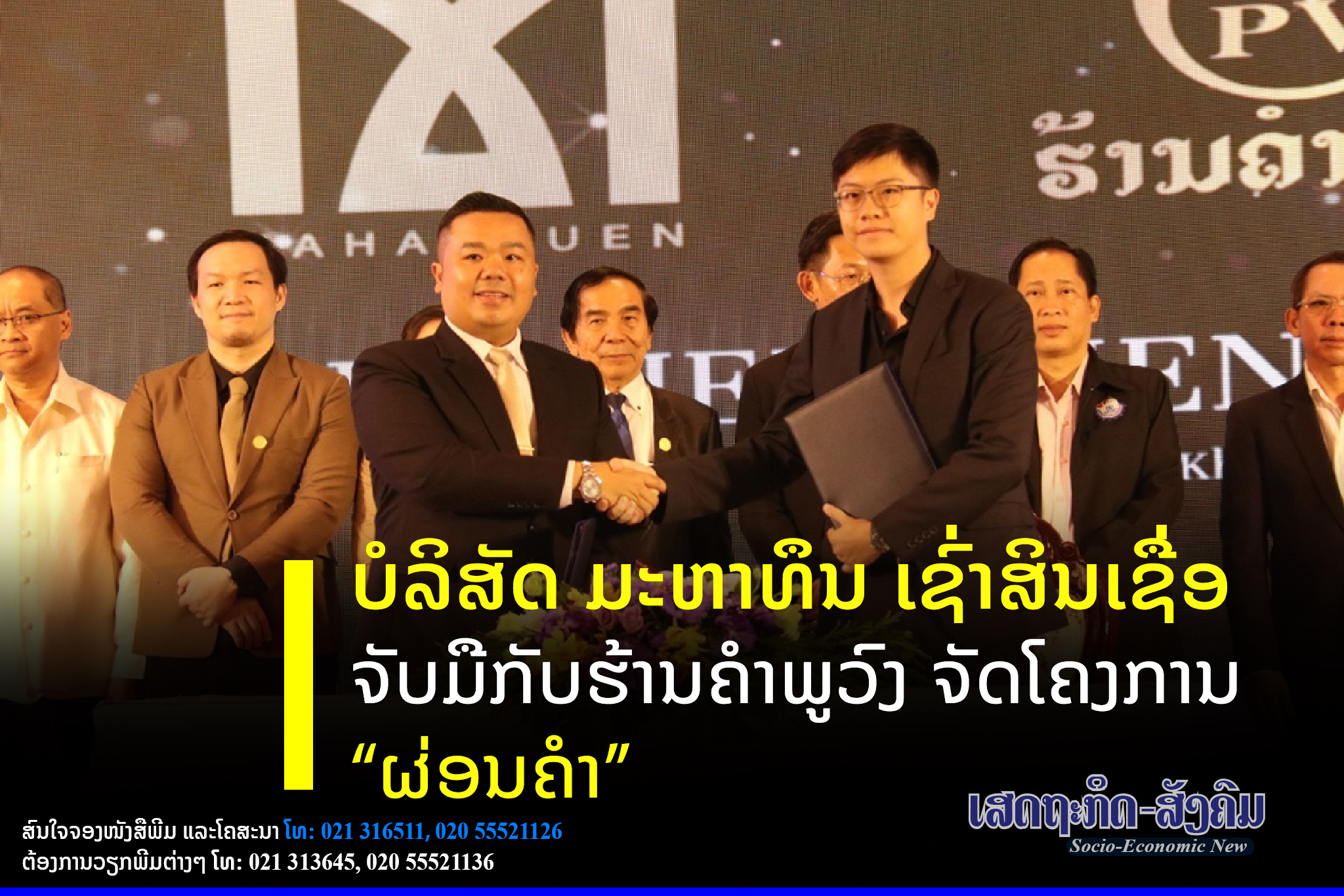 ບໍລິສັດ ມະຫາທຶນ ເຊົ່າສິນເຊື່ອ ມະຫາຊົນ ຜູ້ໃຫ້ບໍລິການເຊົ່າສິນເຊື່ອໄດ້ຈັດພິທີລົງນາມການຮ່ວມມືທາງທຸລະກິດເຊົ່າສິນເຊື່ອຜ່ອນຊື້ຄໍາ ຈາກ “ຮ້ານຄໍາພູວົງ” ຜູ້ປະກອບການຮ້ານຊື້-ຂາຍຄໍາລາຍໃຫຍ່ ໃນ ສປປ ລາວ ໃນວັນທີ 7 ພະຈິກນີ້ ທີ່ໂຮງແຮມຄຣາວພລາຊານະຄອນຫຼວງວຽງຈັນ.