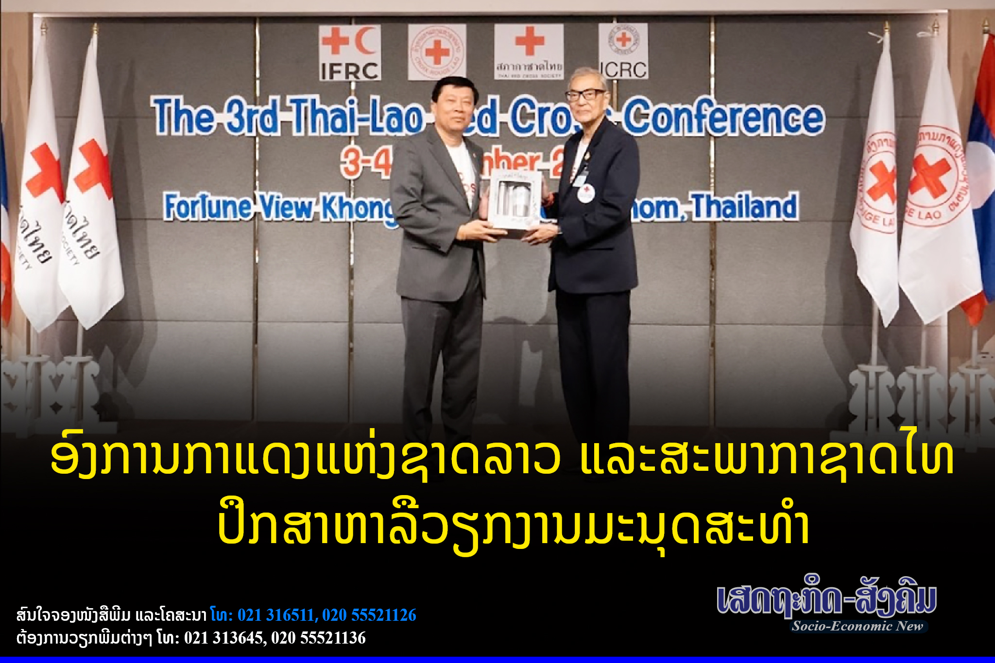 ໃນລະຫວ່າງວັນທີ 3-4 ພະຈິກທີ່ຜ່ານມາອົງການກາແດງແຫ່ງຊາດລາວ ແລະສະພາກາຊາດໄທ ຈັດກອງປະຊຸມຖອດຖອນບົດຮຽນ ແລະຕີລາຄາຄືນຜົນການຮ່ວມມືດ້ານວຽກງານມະນຸດສະທຳ ຄັ້ງທີ 3 ເຊິ່ງຄັ້ງທີ່1 ຈັດຂຶ້ນທີ່ ໜອງຄາຍ ປະເທດໄທ ປີ 2016 ,