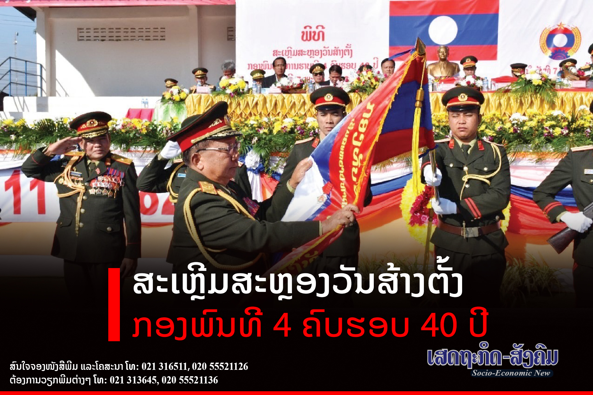 ພິທີສະເຫຼີມສະຫຼອງວັນສ້າງຕັ້ງກອງພົນທີ 4 ຄົບຮອບ 40 ປີ ( 7 ພະຈິກ 1982-7 ພະຈິກ 2022) ຈັດຂຶ້ນຢ່າງເປັນທາງການ ແລະຄຶກຄື້ນໃນວັນທີ 7 ພະຈິກ 2022 ຢູ່ທີ່ສະໜາມກິລາກອງພົນທີ 4 ໂດຍການເຂົ້າຮ່ວມຂອງ ສະຫາຍ ພົນເອກ ຈັນສະໝອນ ຈັນຍາລາດ