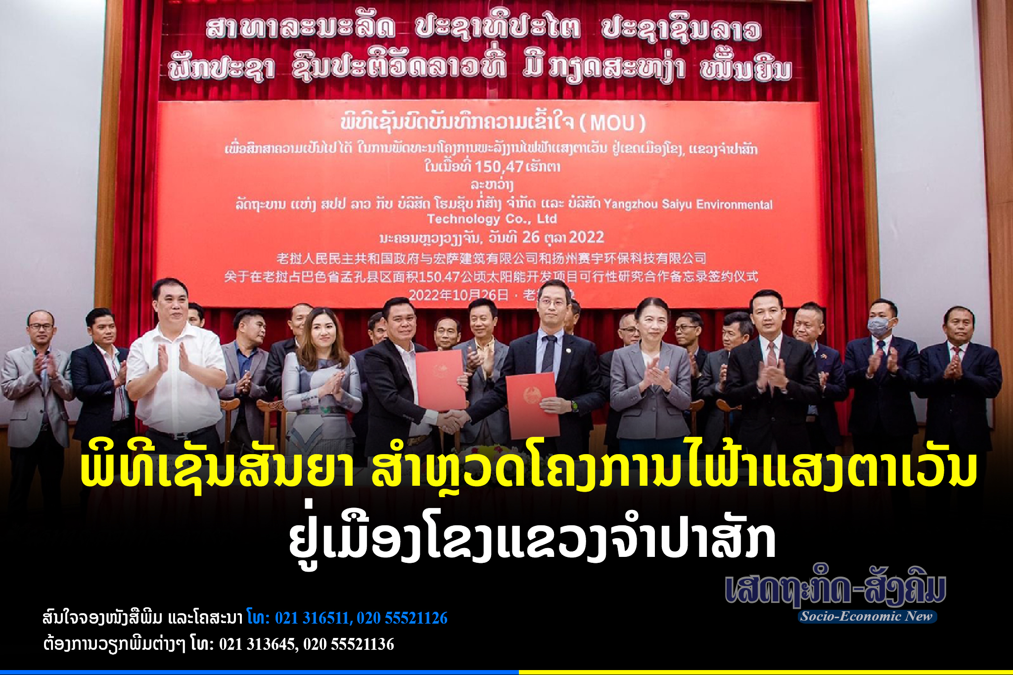 ກະຊວງແຜນການ ແລະການລົງທຶນໄດ້ຈັດພິທີເຊັນສັນຍາຮ່ວມກັບບໍລິສັດ ໂຮມຊັບກໍ່ສ້າງ ຈໍາກັດ ແລະບໍລິສັດ Yangzhou Saiyu Environmental Technology Co.,Ltd
