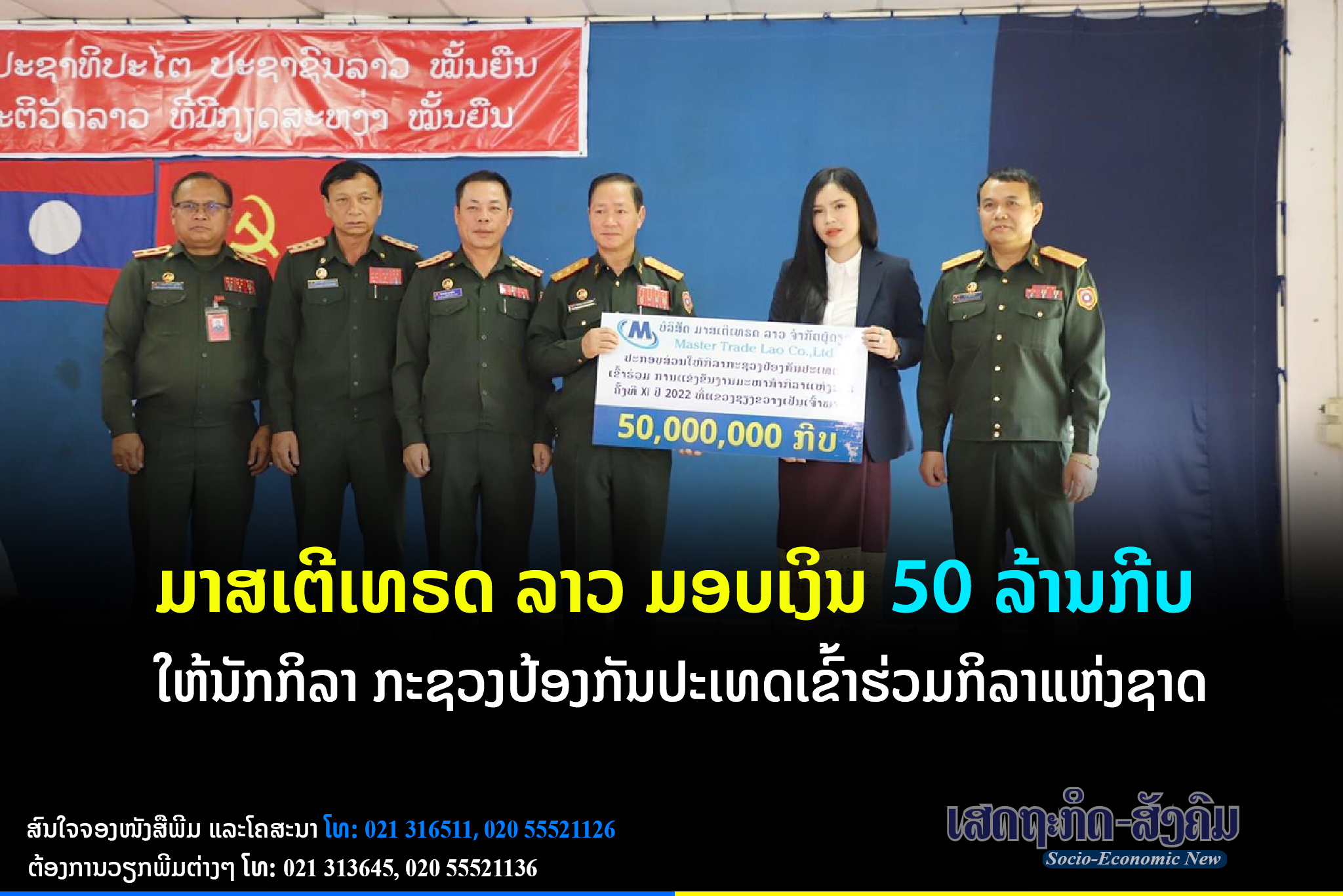 ທ່າ ນນາງ ພິຈິກກາ ປະດາວົງ ປະທານບໍລິສັດ ມາສເຕີເທຣດ ລາວ ຈຳກັດຜູ້ດຽວ ປະກອບສ່ວນ ມອບເງິນຈຳນວນ 50 ລ້ານກີບ