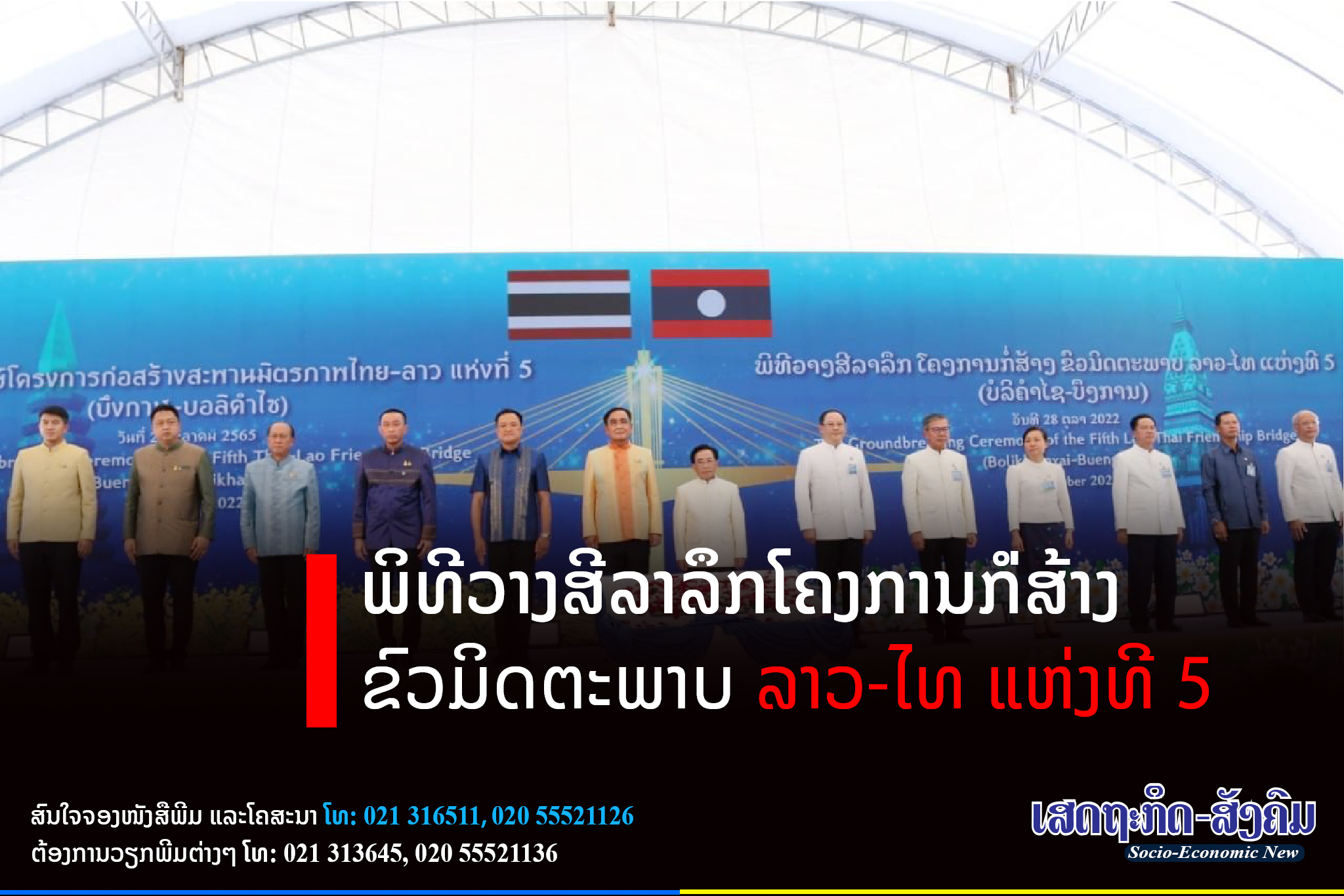 ພິທີວາງສີລາລຶກໂຄງການກໍ່ສ້າງຂົວມິດຕະພາບ ລາວ-ໄທ ແຫ່ງທີ 5 (ບໍລິຄຳໄຊ-ບຶງການ) ໄດ້ຈັດຂຶ້ນໃນຕອນເຊົ້າຂອງວັນທີ 28 ຕຸລາ 2022, ໂດຍໄດ້ຮັບກຽດການເປັນປະທານຮ່ວມຂອງ ພະນະທ່ານ ພັນຄຳ ວິພາວັນ, ນາຍົກລັດຖະມົນຕີ ແຫ່ງ ສປປ ລາວ ແລະ ພະນະທ່ານ ພົນເອກ ປຣະຢຸດ ຈັນໂອຊາ,