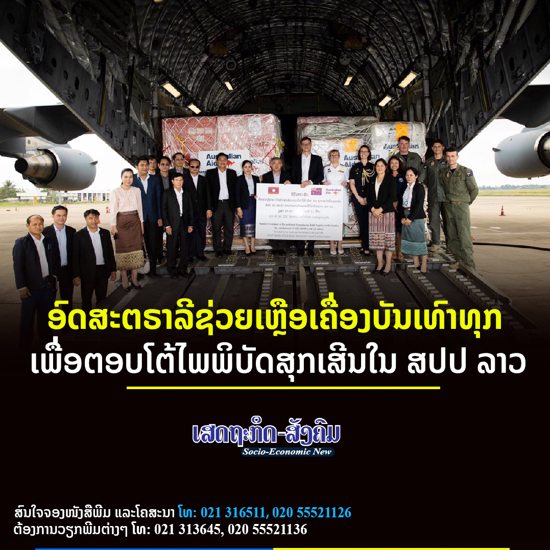 ອົດສະຕຣາລີຍິນດີທີ່ໄດ້ສະໜັບສະໜູນລັດຖະບານລາວ ເພື່ອກຽມຄວາມພ້ອມໃນການຮັບມືກັບໄພພິບັດທາງທຳມະຊາດທີ່ອາດຈະເກີດຂຶ້ນ. ການກະກຽມເຄື່ອງຊ່ວຍເຫຼືອບັນເທົາທຸກໄວ້ໃນໃນປະເທດຈະຊ່ວຍເຮັດໃຫ້ກະຊວງແຮງງານ