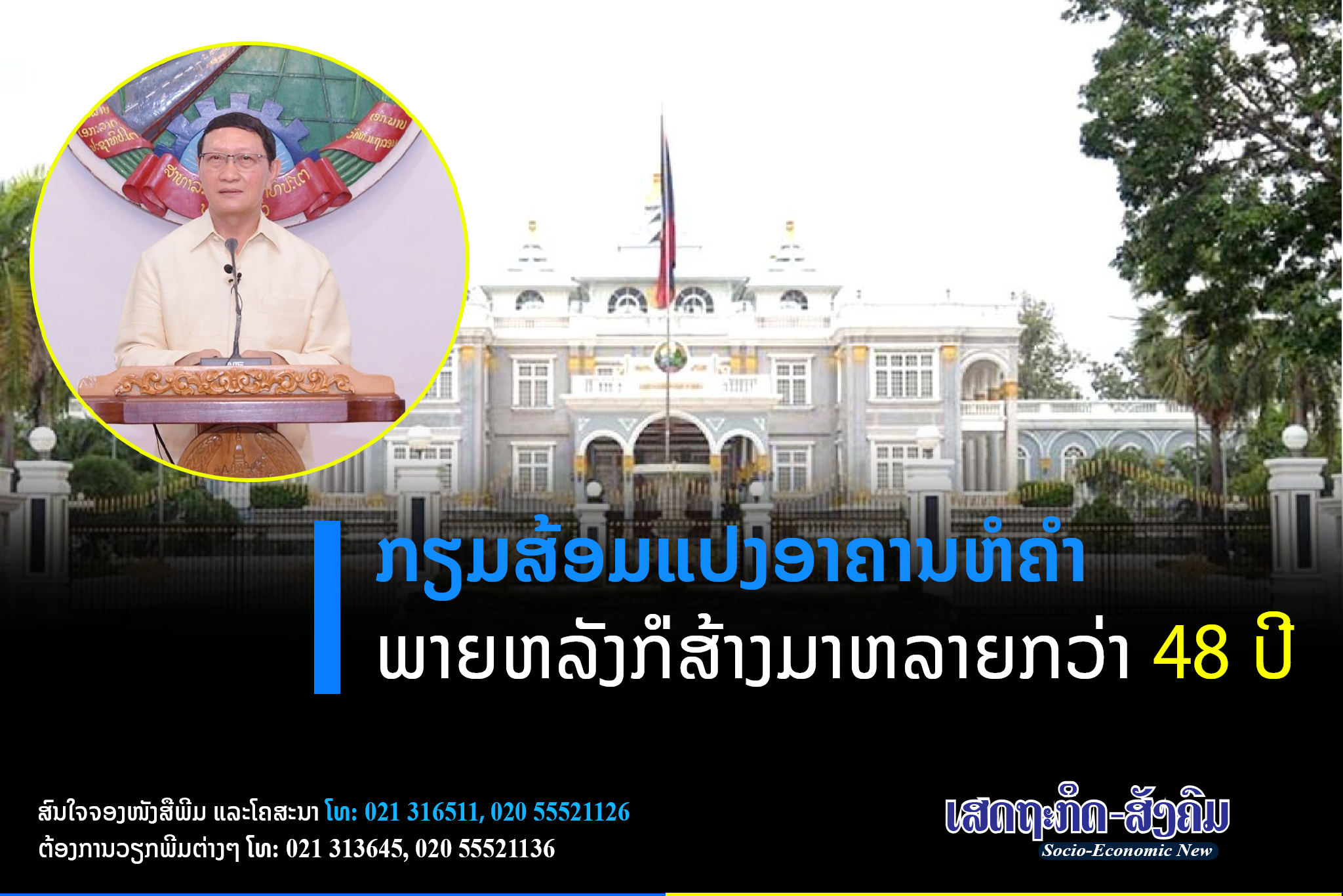 ຫ້ອງວ່າການສໍານັກງານປະທານປະເທດ ກຽມລົງມືສ້ອມແປງໃຫຍ່ອາຄານຫໍຄຳເຊິ່ງມີອາຍຸຫລາຍກວ່າ 48 ປີ, ມາຮອດປັດຈຸບັນສະພາບຂອງອາຄານມີຄວາມຊຸດໂຊມຫລາຍເຊັ່ນ:ມີການຮົ່ວຊຶມ,ແຕກແຫງ ແລະເປ່ເພ.