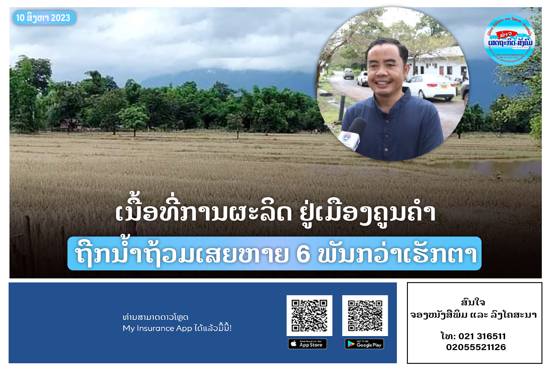 ຈາກຜົນກະທົນ ທາງໄພພິບັດໃນອາທິດຜ່ານມາເຮັດໃກເນື້ອທີ່ທຳການຜະລິດຂອງປະຊາຊົນຢູ່ເມືອງຄູນຄຳ ແຂວງຄຳມ່ວນ ຖືກນໍ້າຖ້ວມ ເສຍຫາຍ 6 ພັນກວ່າເຮັກຕາ.